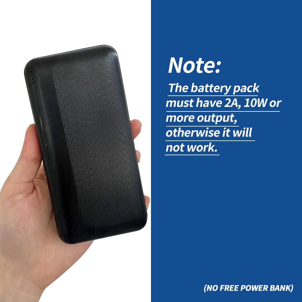 【منفذ USB】يمكنك تشغيله من معظم الأجهزة التي تعمل بمنفذ USB، مثل أجهزة الكمبيوتر المكتبية، وبنك الطاقة، وشواحن USB، ومحولات السيارة، وما إلى ذلك. جهد آمن 5 فولت، وكابل تبديل بطول 1 متر. (لا يوجد بنك طاقة مجاني) ملاحظة! يجب أن تحتوي حزمة البطارية على خرج 2A أو 10W أو أكثر، وإلا فلن تعمل.