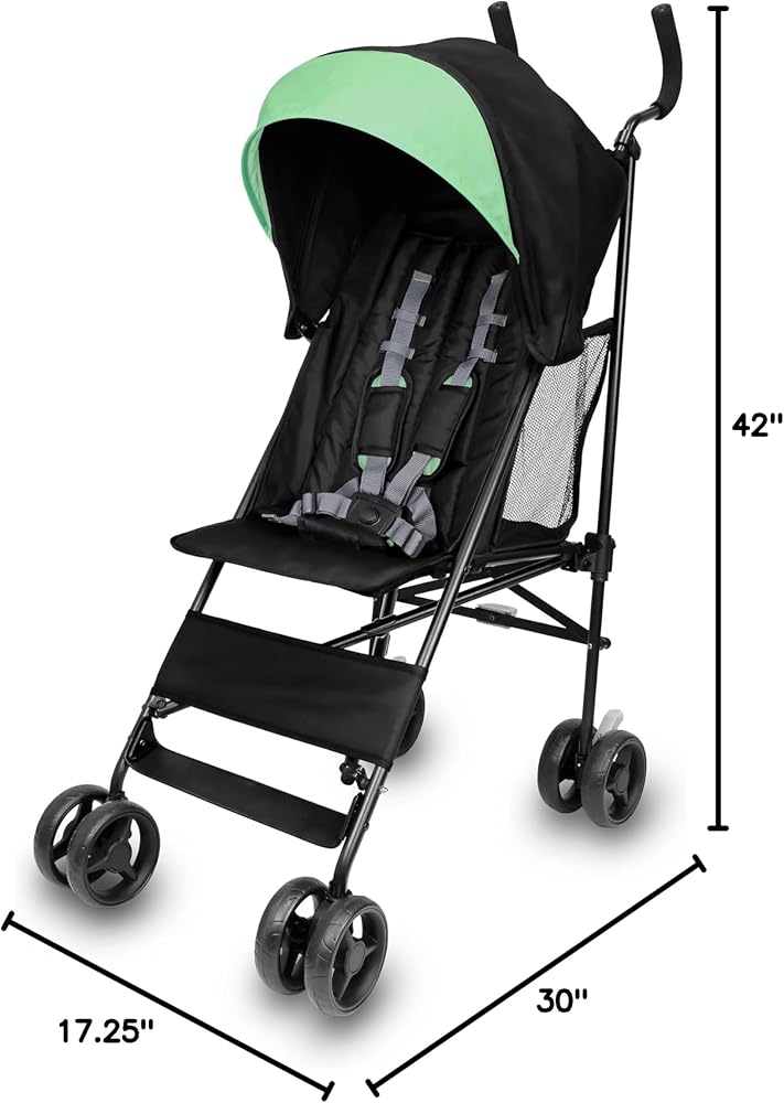 The ideal lightweight stroller for travel or everyday for children 6 months up to 50 pounds; folded dimensions are 51.2" x 11.6" x 7.1"