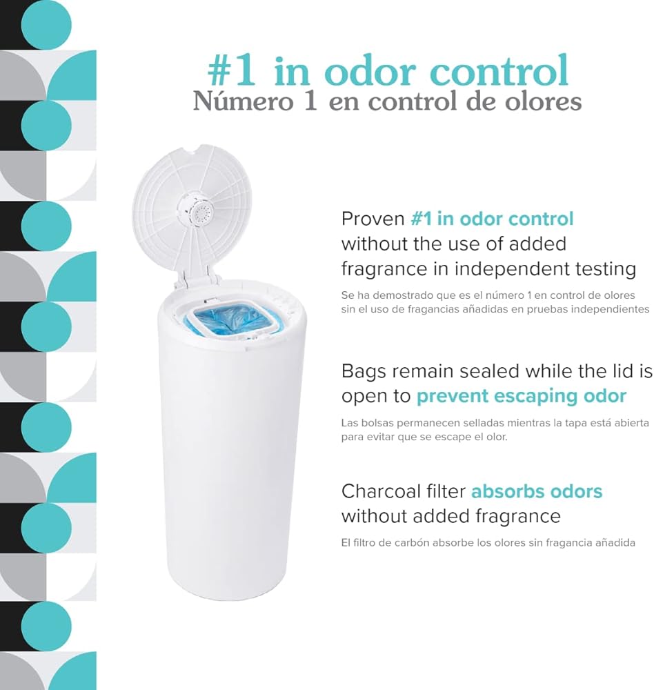 #1 IN ODOR CONTROL: Proven #1 in odor control without the use of added fragrance in independent testing. Bags remain sealed while the lid is open to prevent escaping odor. Charcoal filter absorbs odors without added fragrance. Inhale the sweetness of parenting—not the stink.