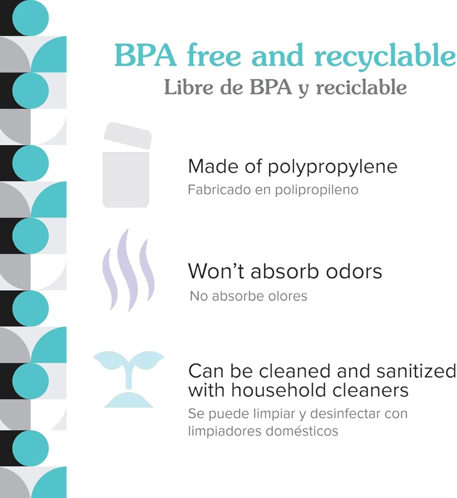 MADE OF POLYPROPYLENE: BPA free. Won't absorb odors. Can be cleaned and sanitized with household cleaners. And recyclable!