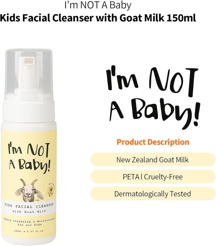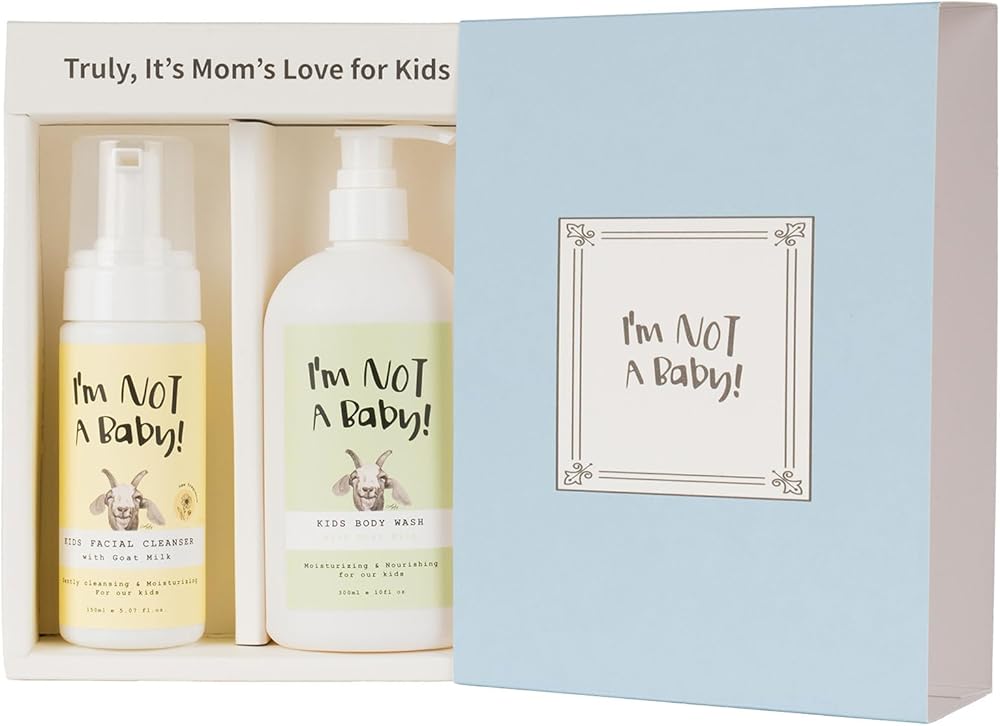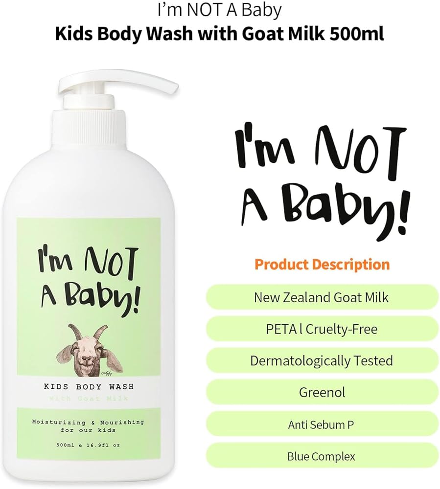 Introducing the "I'm NOT Baby! Body Wash & Moisturizing Wash Duo," your perfect solution for gentle cleansing and nourishing care for your child's skin. Each product is carefully formulated with enriching ingredients, including the benefits of goat milk, known for its natural skin-friendly properties. The body wash offers a gentle cleanse, while the moisturizing wash provides additional hydration, leaving skin feeling smooth and nourished.