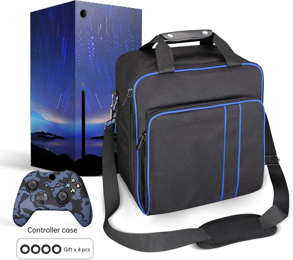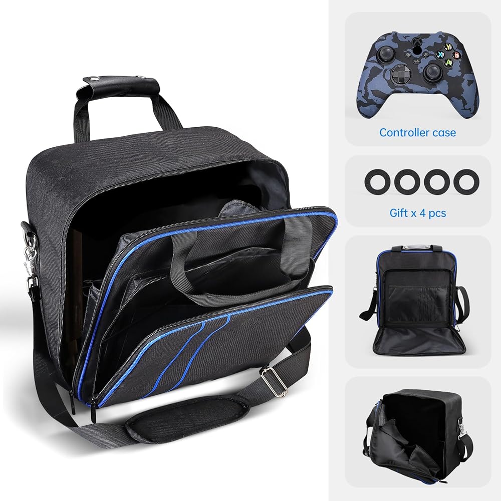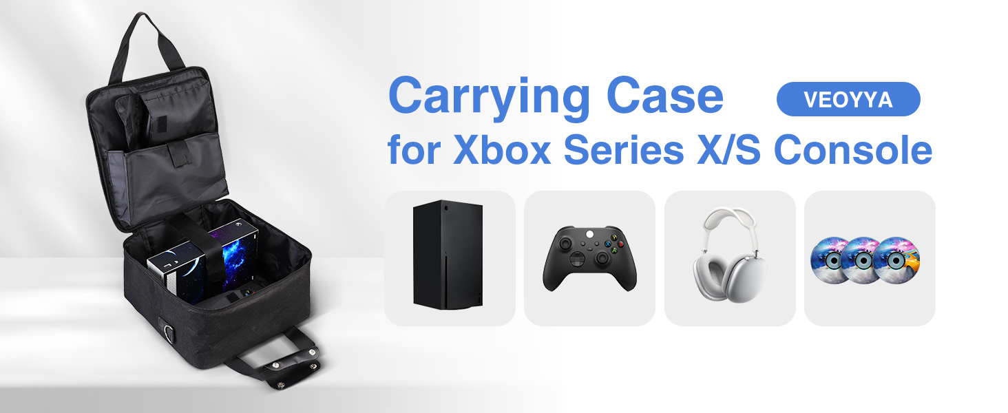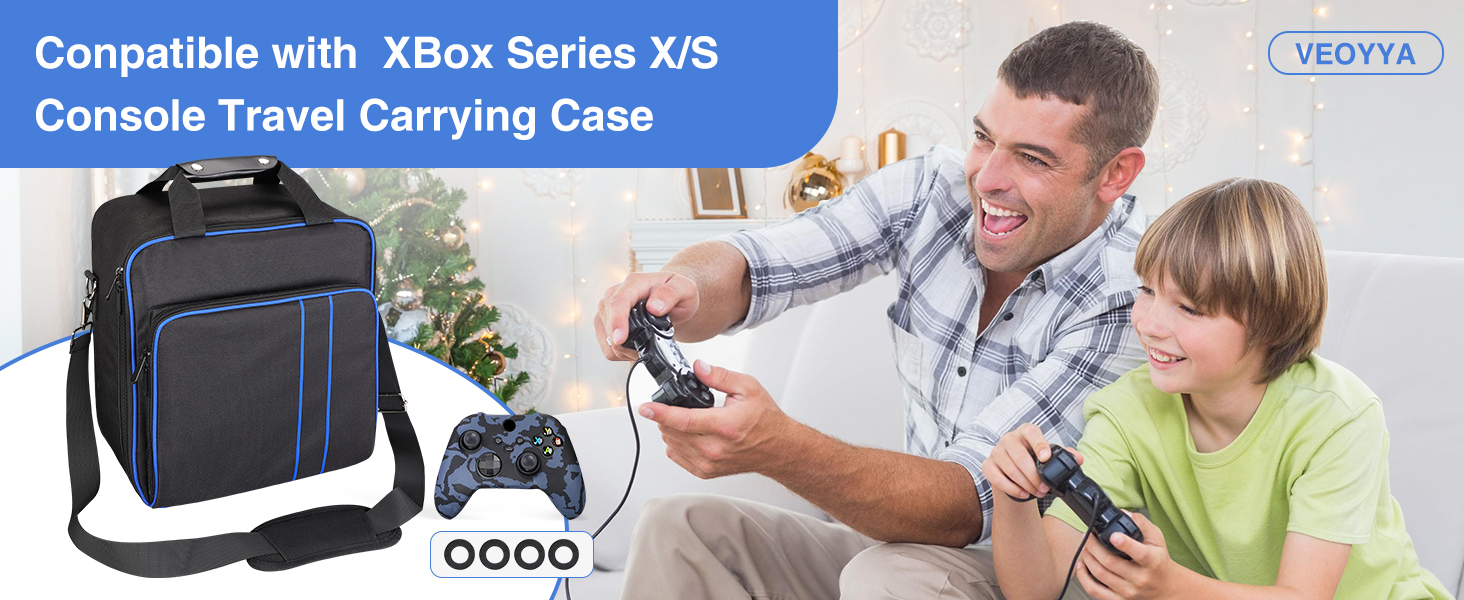【حقيبة حمل متوافقة مع قائمة Xbox Series X/S】1* حقيبة حمل للسفر. (هدية لك: 1* حافظة سيليكون لوحدة التحكم + 2* غطاء هزاز لوحدة التحكم)