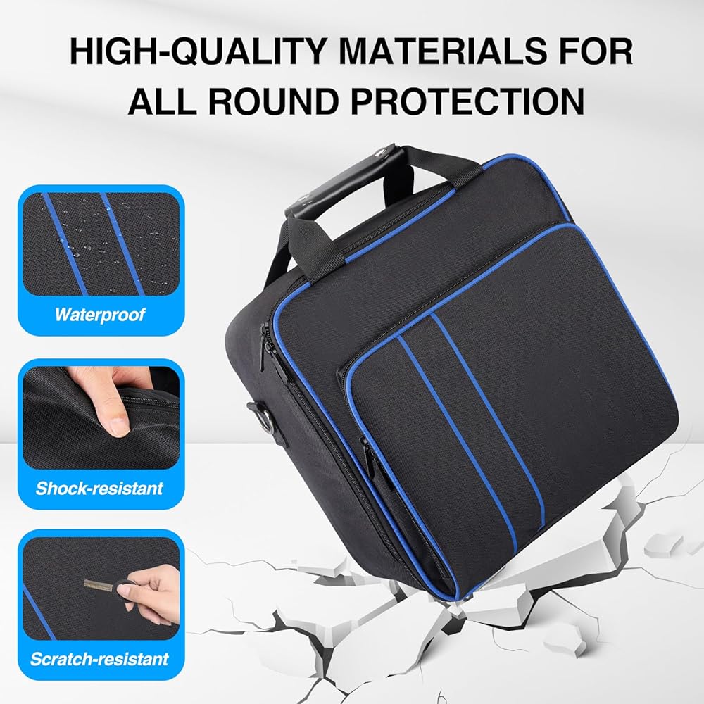 【حقيبة مواد عالية الجودة】مواد النايلون المقاومة للماء يمكنها حماية وحدة التحكم في الألعاب الخاصة بك، مقاومة للماء والغبار، جيوب التخزين محاطة بالقطن المضاد للصدمات. وهذا يقلل من تأثير الأجسام الخارجية على محتويات الحقيبة للحماية من الخدوش والصدمات. . اختر سحابًا مقاومًا للانفجار مصنوعًا من سبائك الزنك لجعل الحقيبة أكثر متانة، والوسادة المضادة للانزلاق تجعل الحقيبة أكثر استقامة وتحافظ على الجزء السفلي من الحقيبة نظيفًا ومرتبًا وتتعرض للضرب بالأشياء الصلبة.