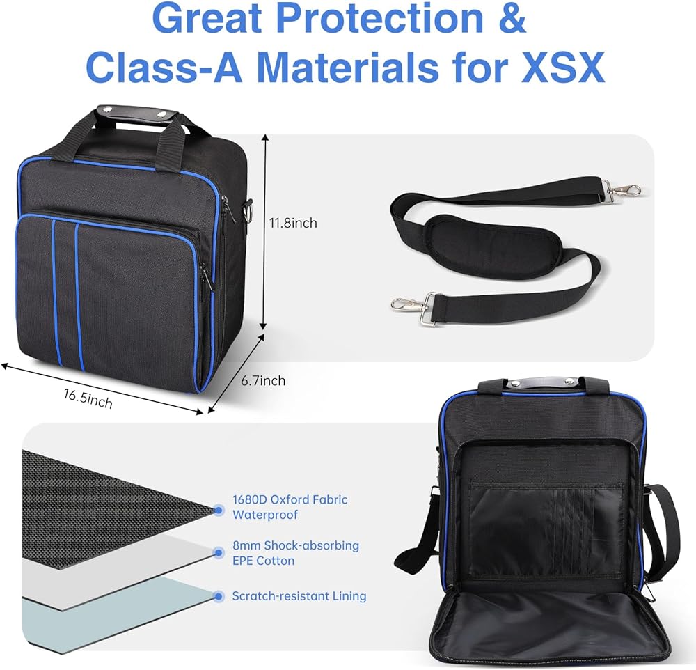 【حقيبة حمل مثالية للسفر 】حقيبة حمل سفر مصنوعة خصيصًا لسلسلة XBOX SERIES X/S! يتكون من نسيج نايلون قوي وشديد التحمل وقابل للتنفس ومقاوم للماء ويوفر مساحة كافية. والجزء الداخلي مجهز بإسفنجة 8 مم لتعزيز الحماية في جميع الاتجاهات. سحّابات عالية الجودة يصعب تشويهها، وأشرطة كتف قابلة للتعديل ومقابض عملية. مناسب تمامًا لاحتياجات حقيبة السفر التي تحمل أجهزة XBOX SERIES X/S. متوافق مع XBOX SERIES X وXBOX SERIES S.