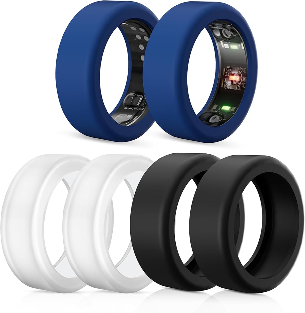 6 حلقات حلقات واقي متوافق مع حلقة أورا Gen 4/Oura Gen 3/Ultrahuman Ring Cover ، حلقات السيليكون غلاف العمل على إكسسوارات الرجال-2Black+2clear+2Blue-S لـ 5 6 7 8 9 10