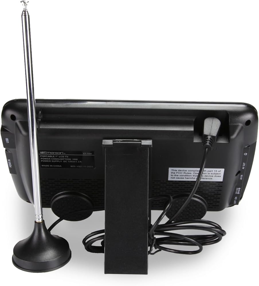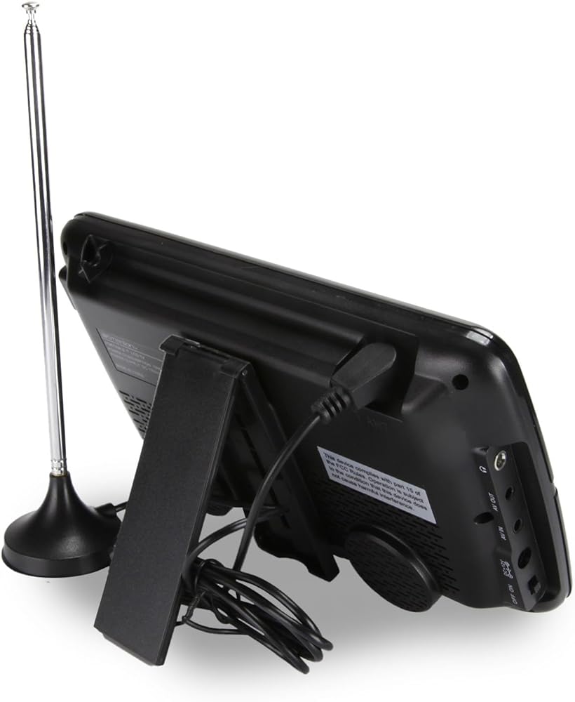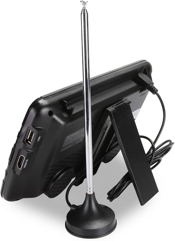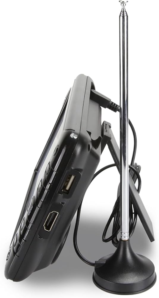 • Enjoy Digital TV Broadcasts on a 7” LCD screen (800 x 480) while on the go • Built-in Digital ATSC TV tuner receives Free Over-the-air HD TV stations • External antenna for enhancing TV reception • Play multimedia files from USB with support for MP3, JPEG, MPEG, XVID, AVC, MP4, H.264, HEVC (H.265), FLV, MKV, TXT • Listen to your favorite media privately and distraction-free thanks to the 5mm earphone output • Built-in rechargeable battery and included DC car cord allow you to conveniently enjoy great entertainment with your friends and family anywhere you go • 3-way Power: AC power adapter, DC car cord, and rechargeable battery (3.7V 1900mAh)