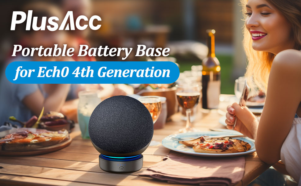 قاعدة بطارية PlusAcc للجيل الرابع من Echo - حامل حامل شاحن محمول بقدرة 10000 مللي أمبير في الساعة، وقت تشغيل 7 ساعات، قاعدة شحن قابلة لإعادة الشحن لجهاز Echo 4th Gen (أسود)