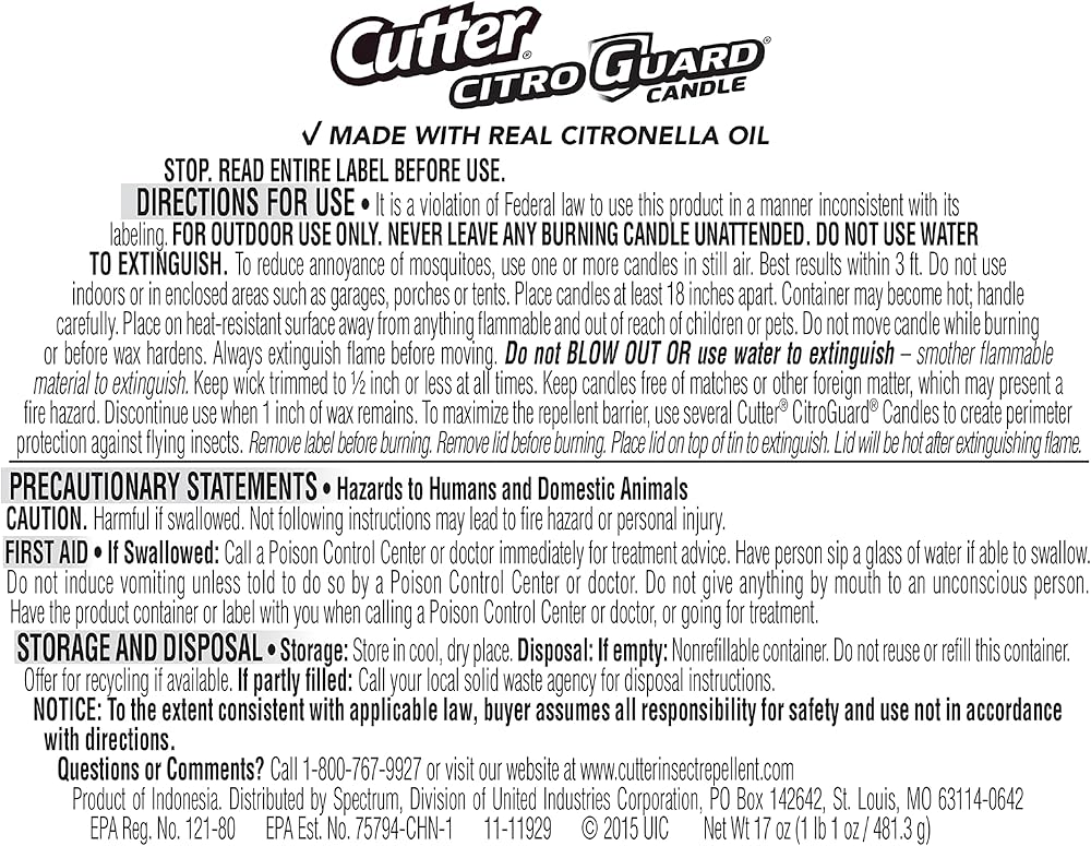 MADE WITH REAL CITRONELLA OIL: 17-ounce candle burns for up to 30 hours.
