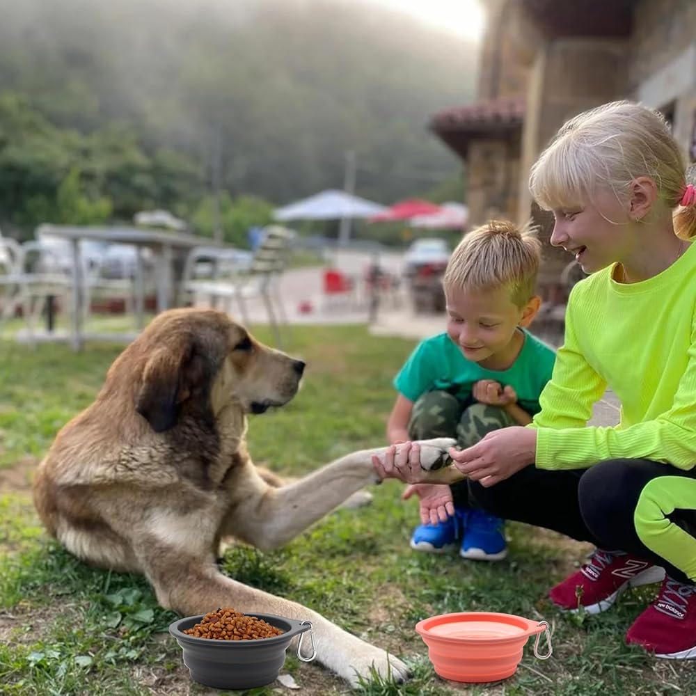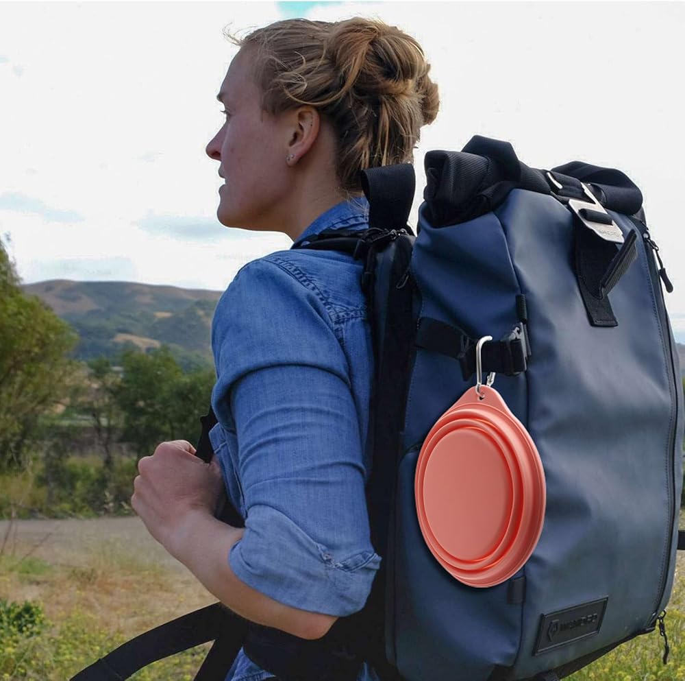 EASY TO USE:Each dog bowl comes with a clip,convenient be attached to dog leash/harness,backpack,belt loop.PLEASE NOTE:these clips are not for human use,not allowed to use as human climbing equipment.