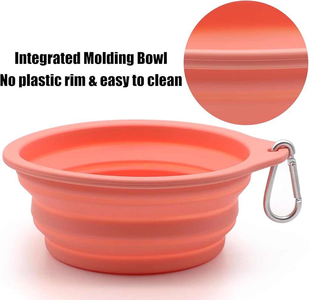 INTEGRATED MOLDING DOG BOWLS: No hard plastic ring,long lasting and not easy to break.Our collapsible dog travel water bowls are lightweight and foldable,perfect for hiking walking and road trips.