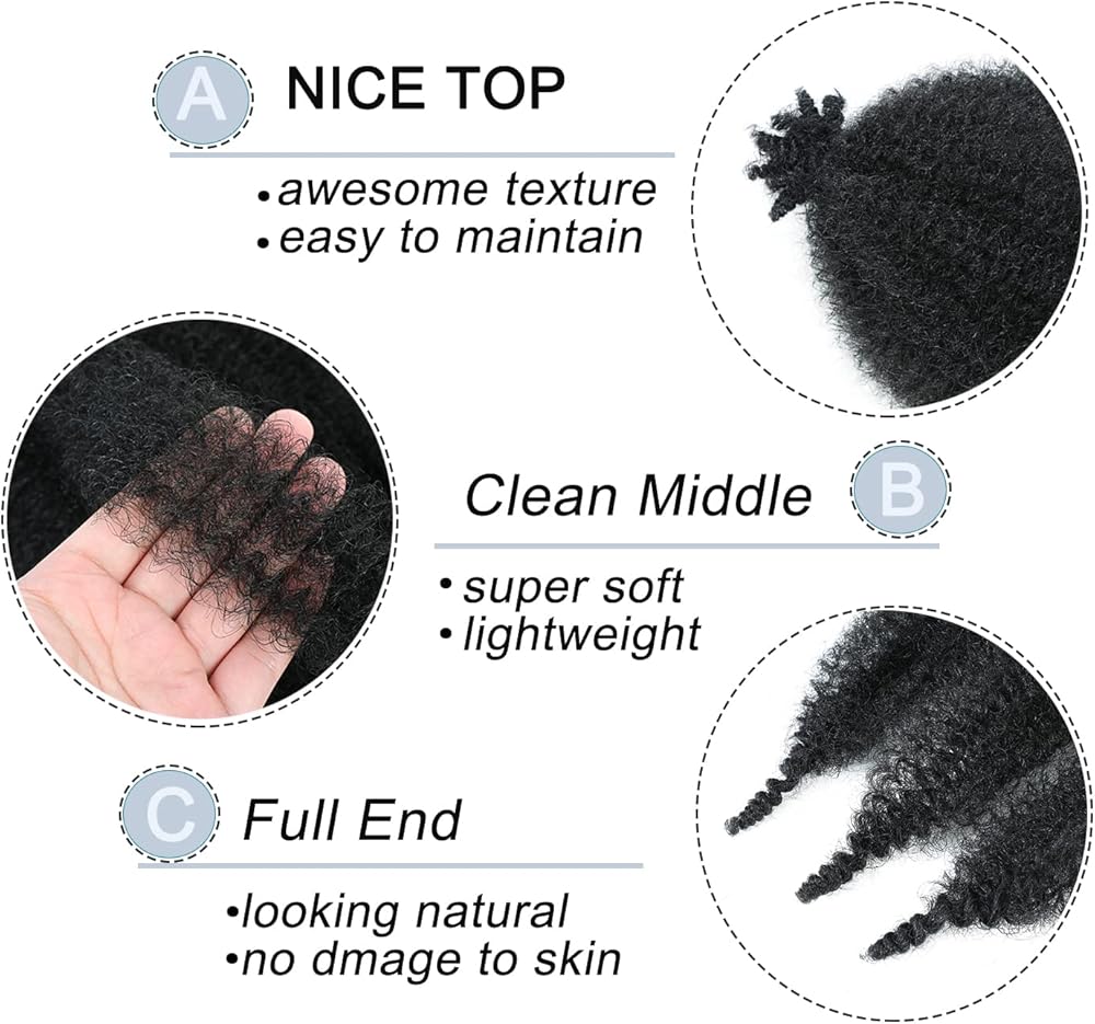♠خامة الشعر: شعر زنبركي مجدول مسبقًا/منفوش مسبقًا، مصنوع من ألياف صناعية مقاومة للاشتعال ذات جودة عالية، مظهر طبيعي وملمس ناعم، شعر أفرو ملتف زنبركي، مصنوع يدويًا بنسبة 100%، مظهر طبيعي، ناعم، ورقيق، مثالي لأي تصفيفة شعر واقية.