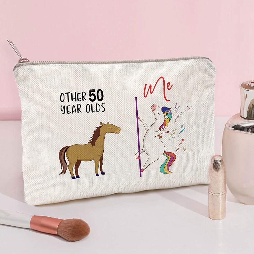 هدية عيد الميلاد الخمسين للمرأة، حقيبة مكياج لعمر 50 عامًا، هدية مضحكة لعيد الميلاد الخمسين لأشخاص آخرين بعمر 50 عامًا