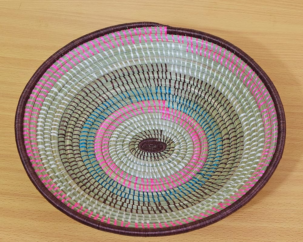 Colors: Pink, Mahogany Brown. Size: Large, approximately 12 Inches Diameter x 3 Inches Height. Kindly check, there are also others colors/designs available. HANDMADE FROM AFRICA
