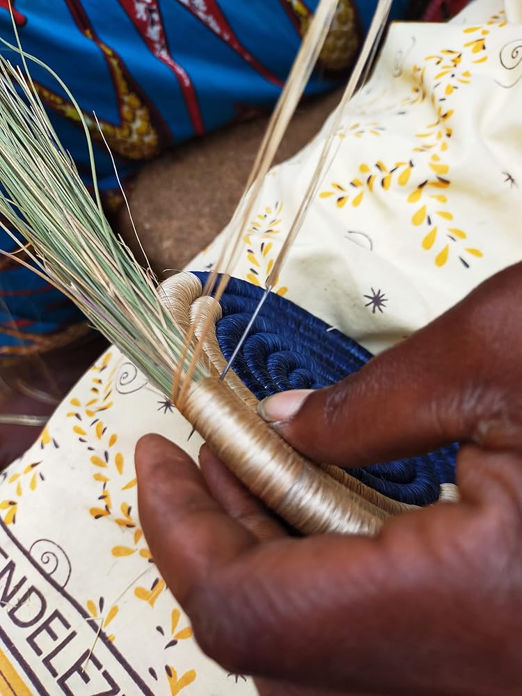 Handmade in Rwanda. We use locally grown grasses such as sisal and sweet grass. Sisal fiber is extracted from the plant, hand-dyed and weaved (pine needle) around the sweet grass. It takes two days to create this work of art. Each basket has a loop on the back, making it easy to hang on a wall. For use, you can mix them for an awesome wall basket collage, entryway bowl, as a table or furniture display or as a gift (definitely a hit of a gift). Made of natural fibers, safe to keep fruits however we don't recommend to keep anything inside that can create stains. We also suggest to keep them away from direct sunlight, high humidity or excessive dust. Size: Large. Approximately 12 Inches Diameter x 3 Inches Height. Handmade from Africa. Fair Trade Product.