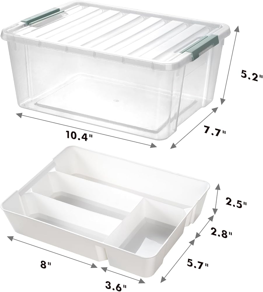 • ✨【STORAGE BOX + TRAY】- This is a storage box with a removable tray for sorting and organizing your items. It keeps things tidy and makes it easy to locate what you need. Say goodbye to rummaging through mixed-up storage boxes and spending excessive time searching for your belongings (Internal Dimensions:10.4"L x 7.7"W x 5.2"H).