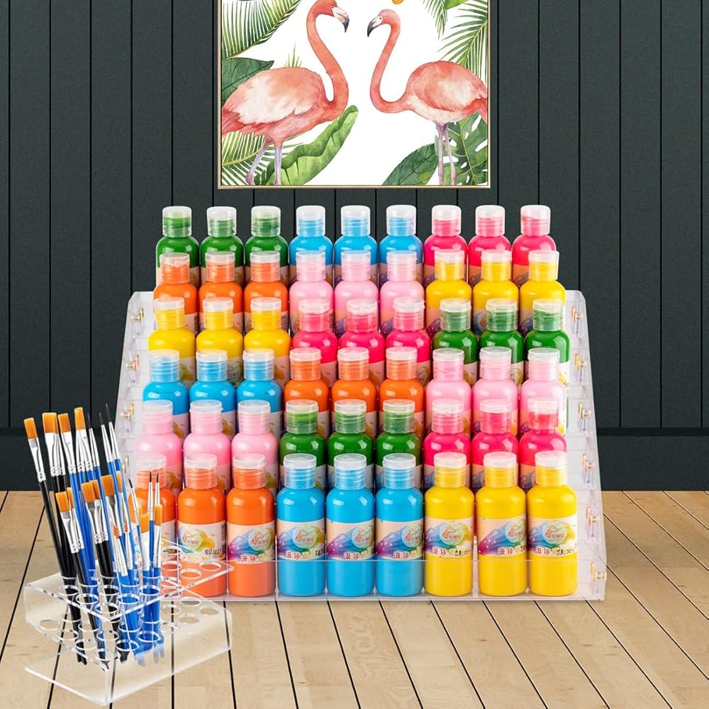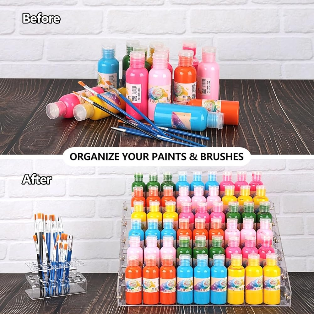 It is made of high-quality, transparent, and durable acrylic material. It is 100% safe, eco-friendly, and easy to clean and maintain. This organizer keeps your paint, ink, and other liquid items organized for easy access and use. Additionally, it saves space and can serve as a decorative piece for your home or office. Moreover, it provides a better viewing angle to display your goods at shops or trade fairs.
