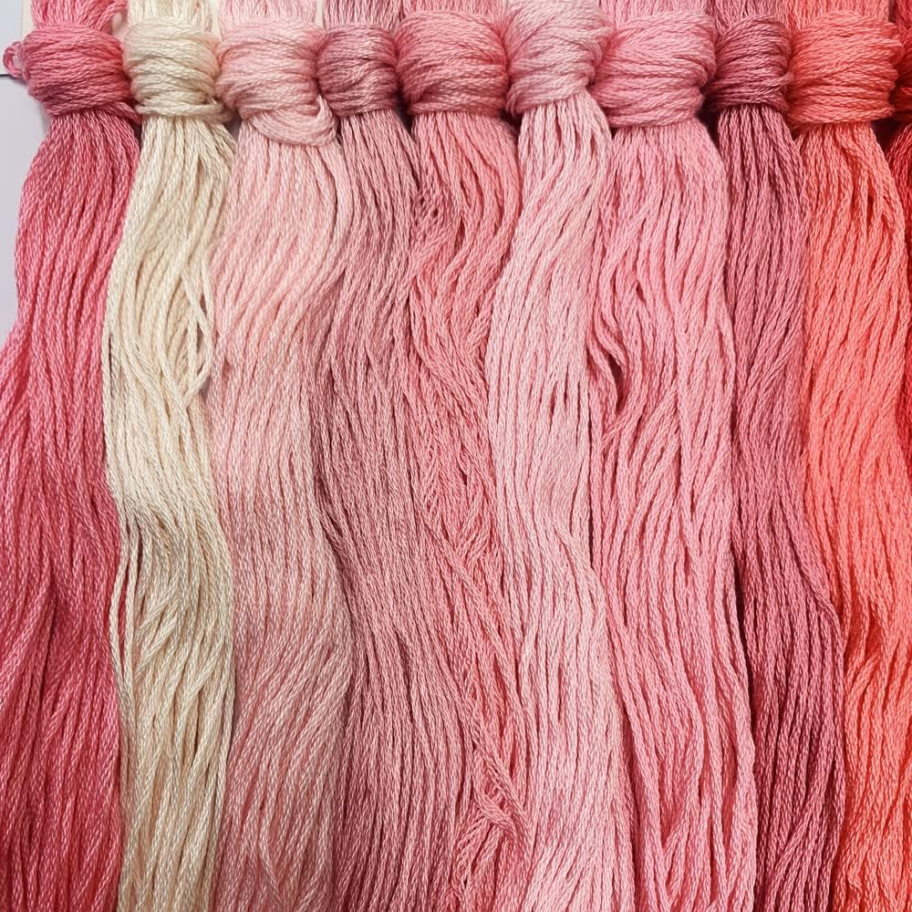 Embroidery thread: Egyptian long staple cotton.Threads are 100% cotton with strong and vibrant colours. They are colour fast and know for anti knotting. All of our threads are colour fast , strong and super soft.