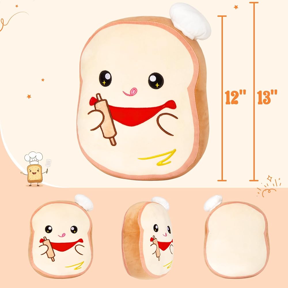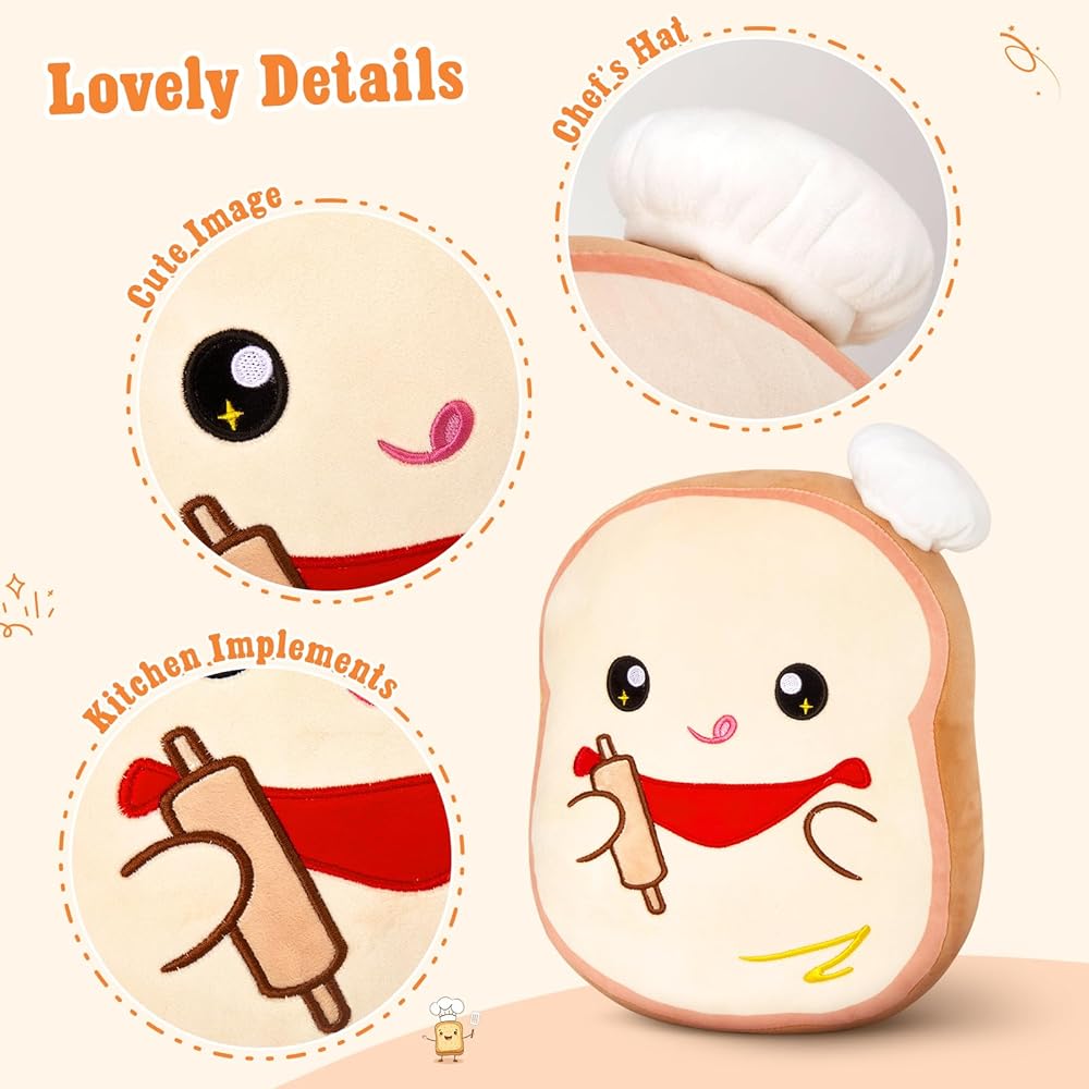 • 🍞وسادة لعبة خبز التوست القطيفة🍴: يأتي إلهام تصميم هذه الوسادة القطيفة من طاهٍ معجنات يعمل مع حقيبة الأنابيب. إنها تحمل كيس الأنابيب في يدها ورأسها مغطى بالكريمة والثلج، مما يخلق وسادة اسفنجية رائعة، يتم إرسالها إلى الأطفال الذين يحبون الخبز المحمص. لعبة الخبز المحمص الخاصة بنا هي بالتأكيد هدية رائعة لمحبي الحلوى.