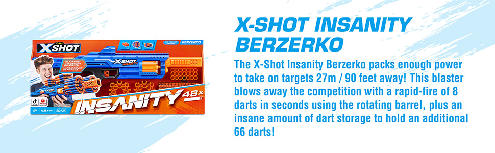 Insane Blaster: Have your mind blown by the X-Shot Insanity Bezerko Blaster. Combine the Bezerko with other Insanity Blasters to create the most EPIC blaster you have ever seen!