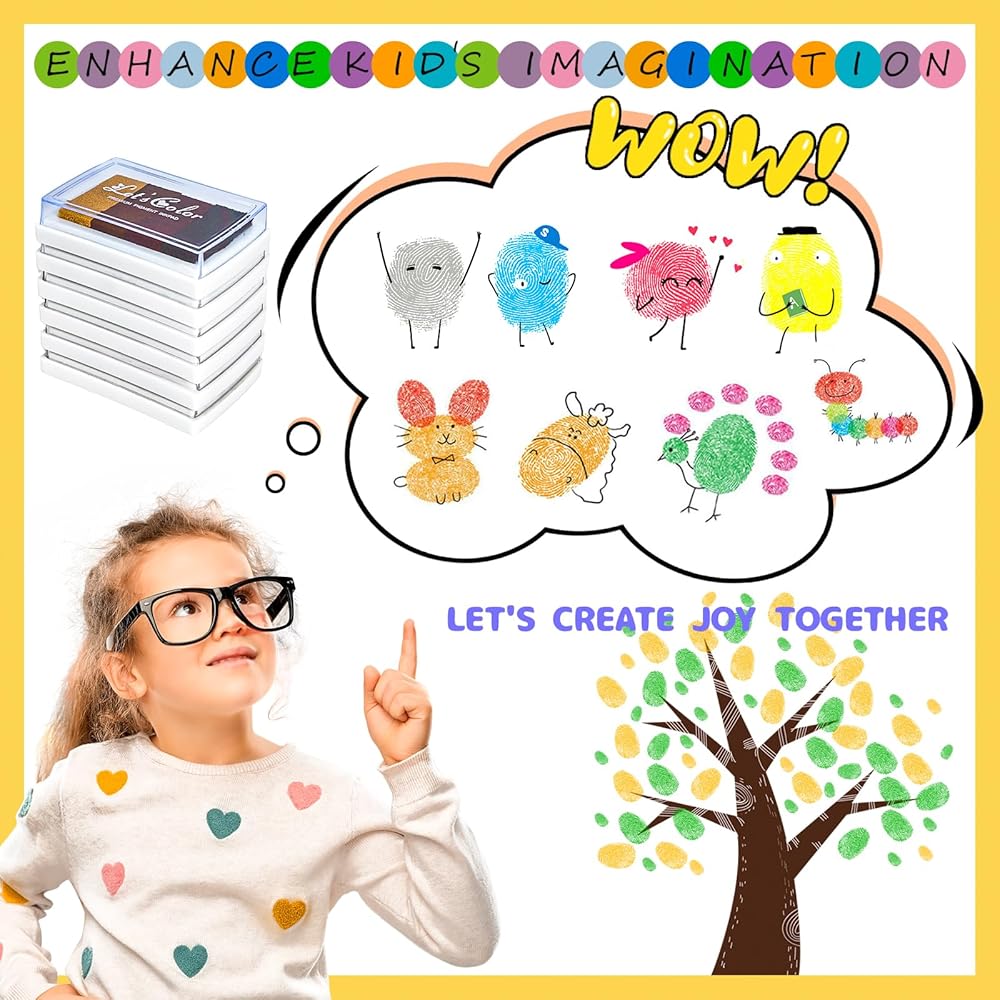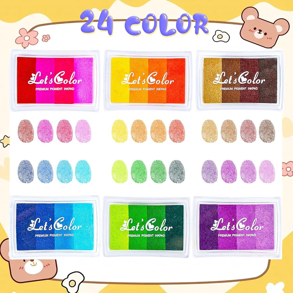 【مجموعة مكونة من 6، 24 لونًا نابضًا بالحياة】 أشعل الإبداع مع وسادات الحبر الخاصة بنا التي تتميز بـ 24 لونًا مذهلاً مصممة لتأسر عقول الشباب. مثالية لصياغة لوحات الأصابع الفريدة والمشروعات اليدوية الممتعة.