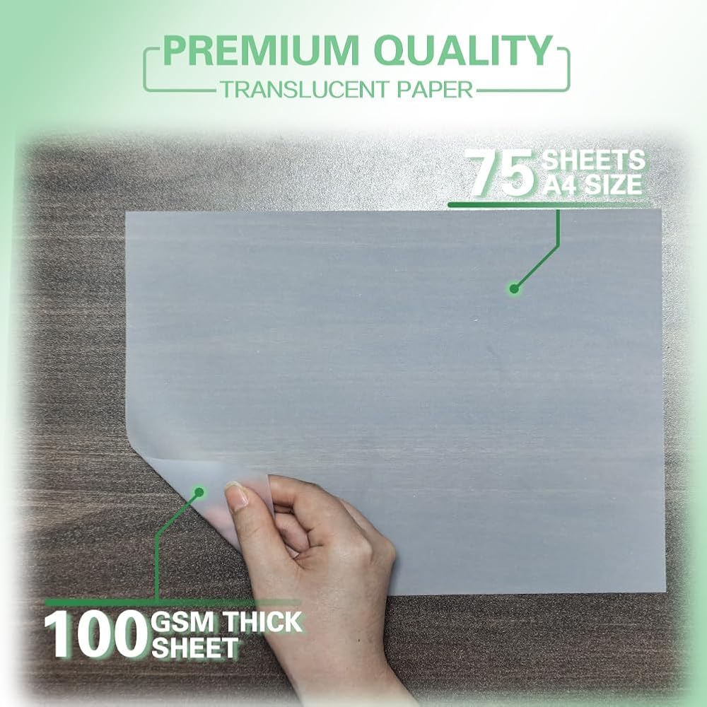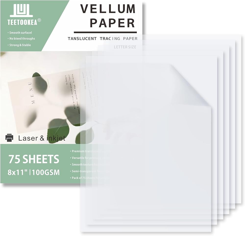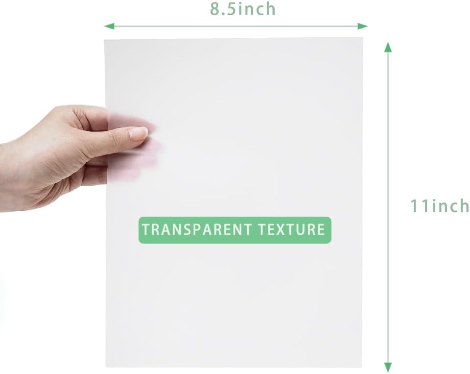• مواد عالية الجودة: 75 ورقة مقاس 8.5x11 بوصة 100 جرامًا للمتر المربع/68 رطلًا من الورق الشفاف الشفاف، مما يضمن ملمسًا أنيقًا مناسبًا لمختلف المشروعات.