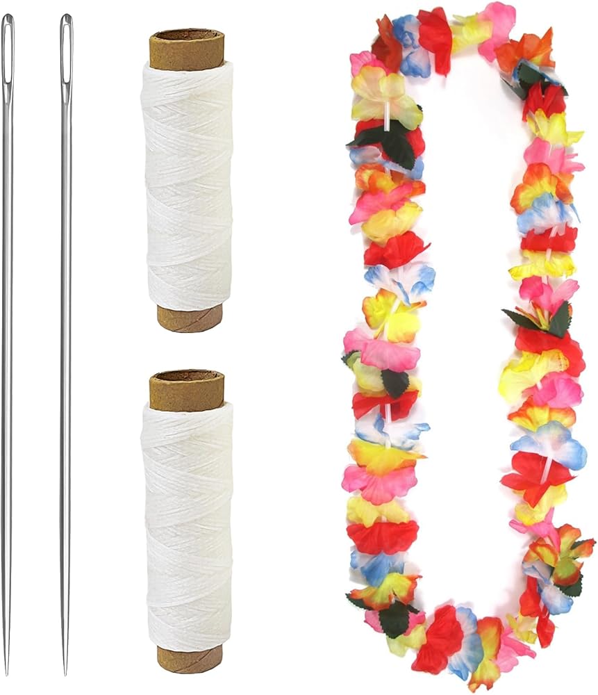 Quality Ensured:the lei needles are made of stainless steel, which is corrosion resistant with a nonporous surface; So it will last for a long time without rusting; The waxed thread cord made of quality material, 150 D waxed leather thread, and is heavy duty, lightweight, portable and wax coated, so it makes tightening the stitches very easy, smooth touch, not easy to fray.