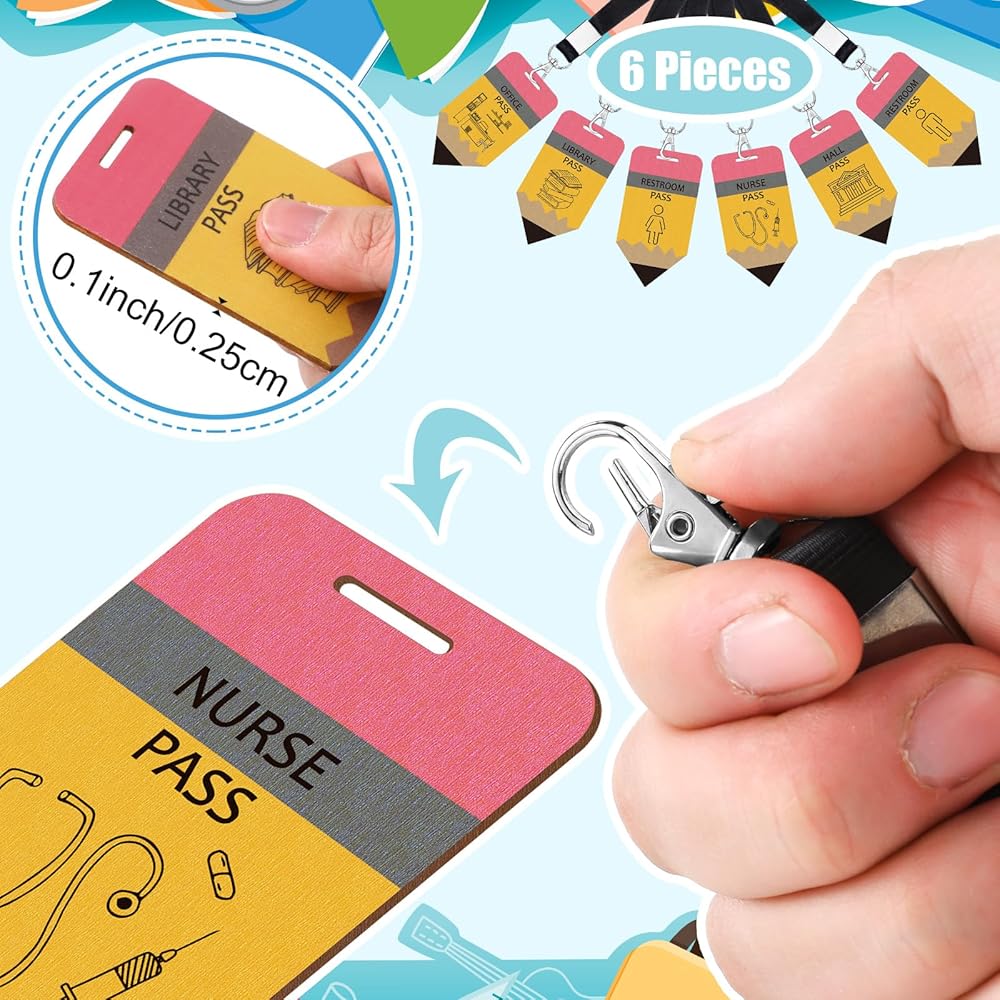 • Ample Quantity: 6 pieces of school passes with lanyards, including passes for library, hall, office, nurse and restroom; Our hall pass makes it easier to get in and out of places, sufficient quantity and various patterns can satisfy your use and replacement requirements in your classroom