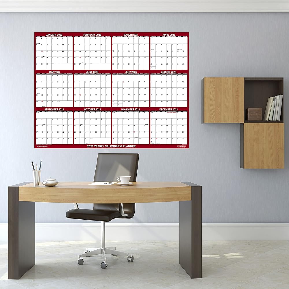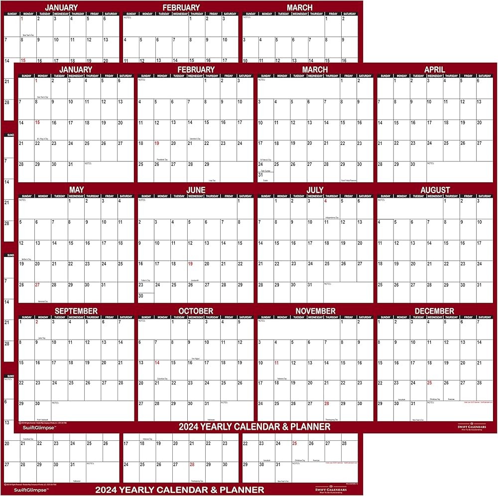 تقويم حائط SwiftGlimpse 2024 مقاس 32 بوصة × 48 بوصة، قابل للمسح، جامبو XL، مسح رطب وجاف، مصفح، مخطط حائط سنوي سنوي لمدة 12 شهرًا، قابل للعكس، أفقي/عمودي، كستنائي