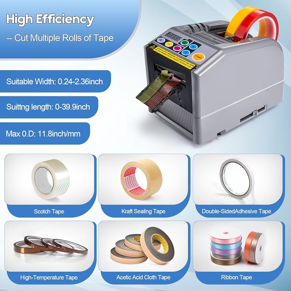 • الأشرطة المتنوعة: آلة قطع الشريط Yosuny هي آلة قوية ومتعددة الاستخدامات يمكنها التعامل مع مجموعة واسعة من الأشرطة، بما في ذلك الأشرطة الشفافة وورق الكرافت والألياف والأشرطة التحذيرية والمزدوجة الجوانب والأشرطة المزخرفة. بفضل وضع Lcon لقطع الأشرطة، يمكن للقسم الفاصل قطع لفتين من الشريط في وقت واحد، مما يجعله مثاليًا لأعمال التعبئة والتغليف. قم بتبسيط عملية قطع الشريط باستخدام ماكينة توزيع الأشرطة الكهربائية Yosuny!