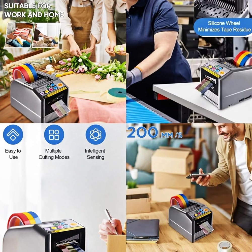 ترقية آلة قطع الأشرطة بعجلة من السيليكون للأشرطة بعرض 0.24 بوصة - 2.36 بوصة (6-66 مم)، موزع الأشرطة التلقائي، آلة قطع الأشرطة الكهربائية، 39.33 بوصة (999 مم) الحد الأقصى لطول القطع