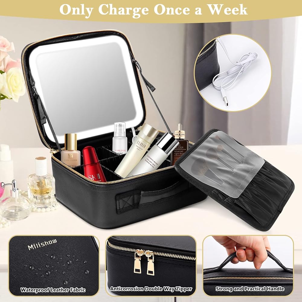 【خامة عالية الجودة】حقيبة المكياج هذه مصنوعة يدويًا من مادة جلدية صناعية عالية الجودة، مما يجعلها متينة ومقاومة للماء وسهلة التنظيف. السحاب المزدوج الناعم يسمح بسهولة الوصول. مزودة ببطارية قوية بقوة 2000 مللي أمبير في الساعة، ويمكن شحنها باستخدام منفذ USB، مما يوفر لك تجربة أفضل