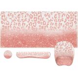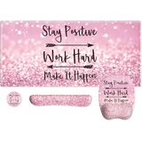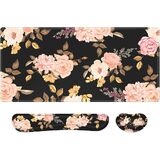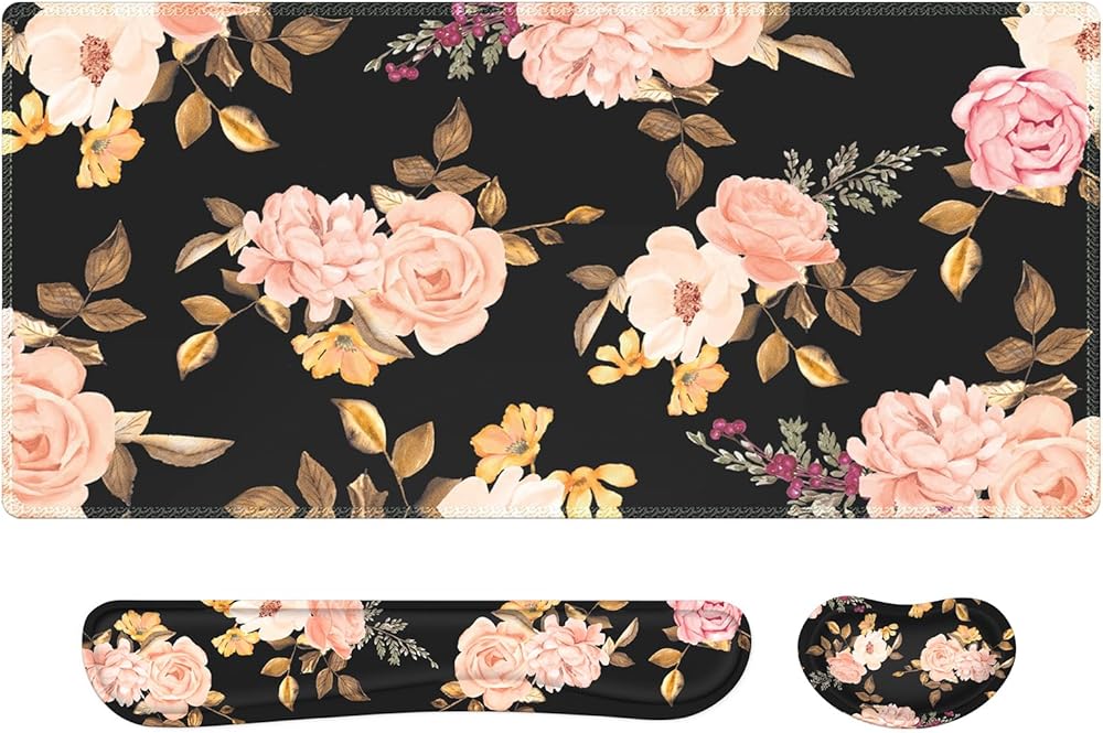 سجادة مكتب كبيرة الحجم مقاس XXL، لوحة ماوس على شكل زهور مع مسند للمعصم، مسند للمعصم للوحة المفاتيح، مجموعة وسادة مكتب 3 في 1، لوحة ماوس للألعاب مع دعم للمعصم، بساط كمبيوتر للكمبيوتر المكتبي والكمبيوتر المحمول للنساء، أسود وردي