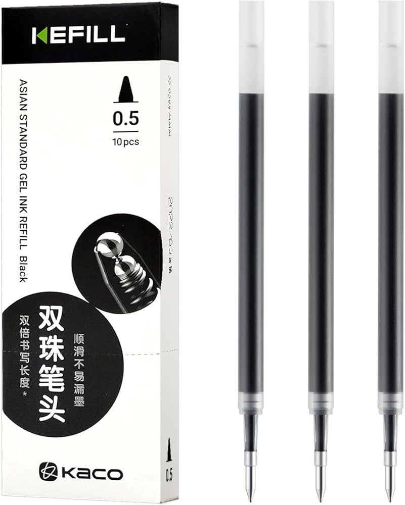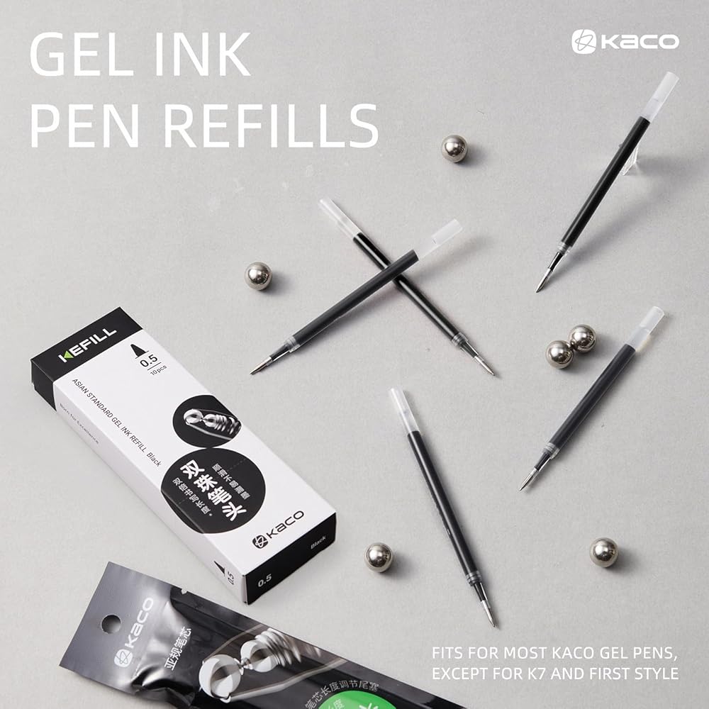 إعادة تعبئة أقلام الجل لأقلام KACO، حبر أسود، علبة مكونة من 10 قطع 0.5 مم لأقلام الكتابة الناعمة ذات النقاط الدقيقة القابلة لإعادة التعبئة