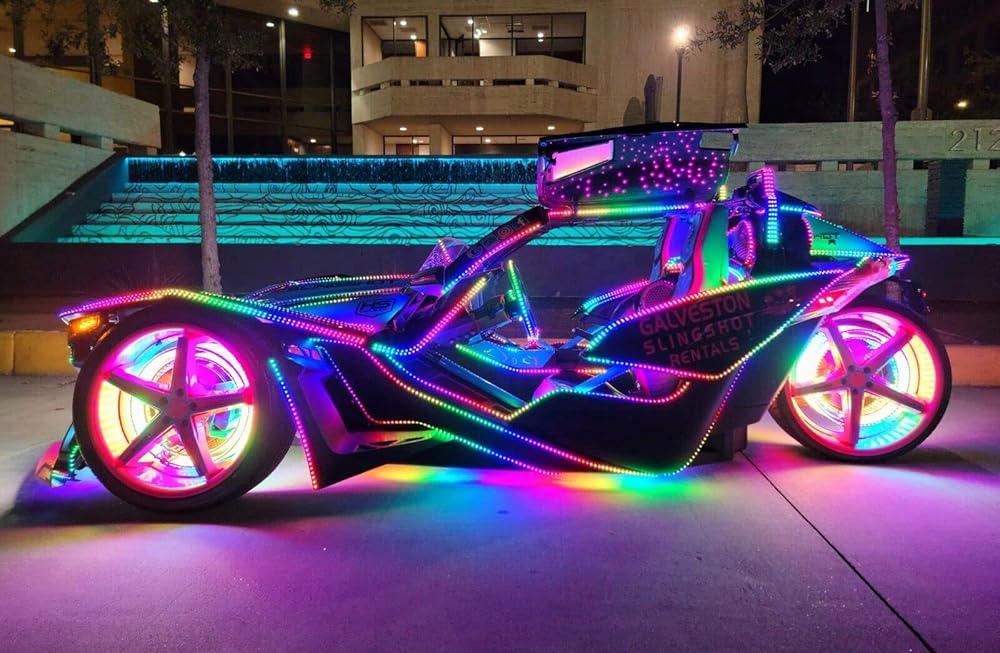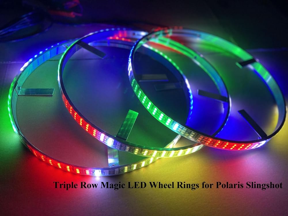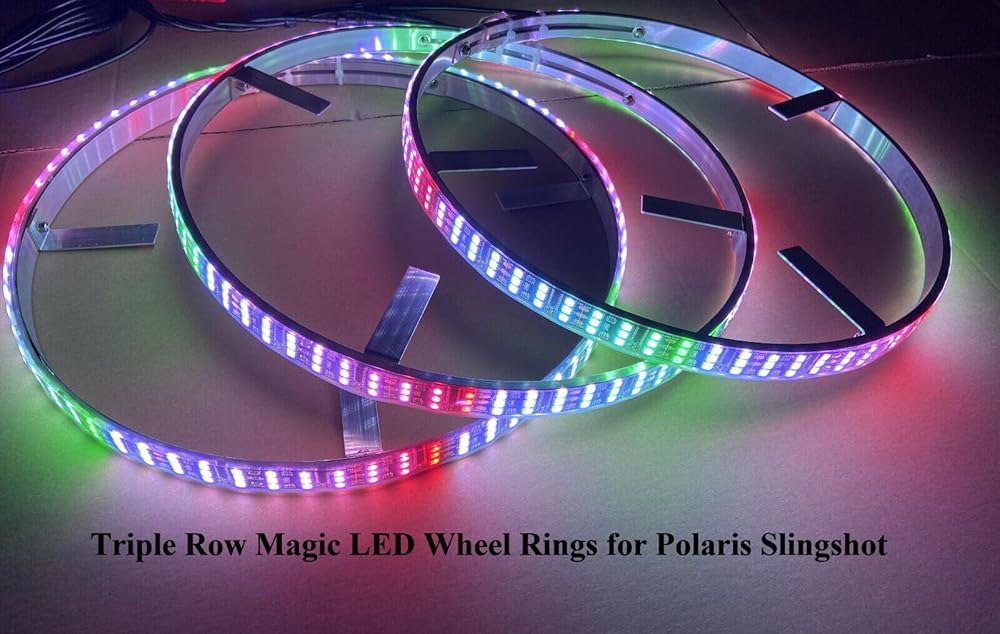 بلوتوث + جهاز تحكم عن بعد 3 قطع 15.5 بوصة أضواء حافة عجلة ثلاثية الصف RGB Whte لون الحلم مطاردة قوس قزح سيمفوني الإضاءة لبولاريس سلينجشوت 2015-2023