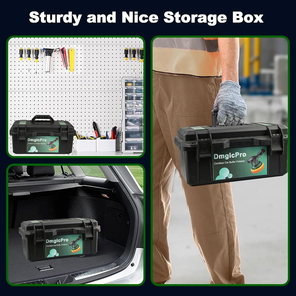 [أفضل هدية] مع صندوق تخزين مقاوم للماء، يمكنك تخزين الملمع وجميع الملحقات الإضافية بشكل مثالي. يحتوي صندوق التخزين على مقبض قابل للطي لسهولة الحمل، ويمكن وضعه بسهولة في أي مكان دون أن يشغل مساحة. يتم وضعه بشكل مثالي في الزاوية أو في صندوق السيارة، وهو مناسب جدًا للاستخدام المنزلي، للتنظيف المنزلي، وتلميع السيارات، والعناية بالأثاث، وأفضل هدية للعائلة والأصدقاء، ومثالي للعطلات، وأعياد الميلاد، والذكرى السنوية، إلخ.