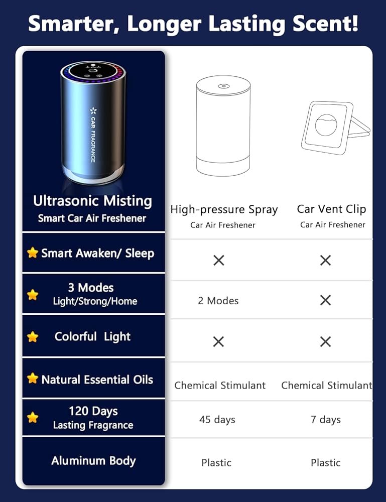 ✅【هادئ وفعال وقابل للتعديل】إنه أكثر هدوءًا من معظم العلامات التجارية الأخرى ويملأ سيارتك بسرعة برائحة لطيفة. يمكنك تعديل قوة الرائحة (خفيفة، قوية، منزلية). إعدادات بسيطة تسمح للعطر بالاستمرار طوال اليوم!