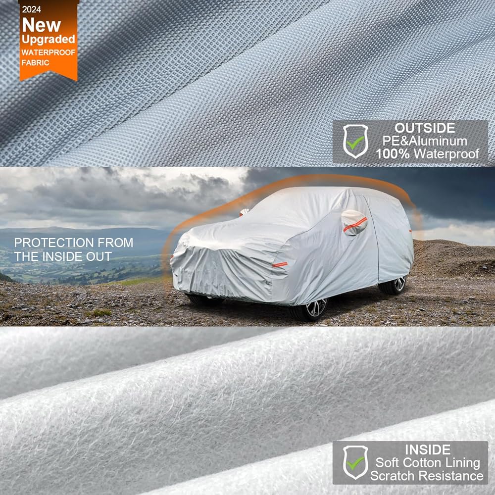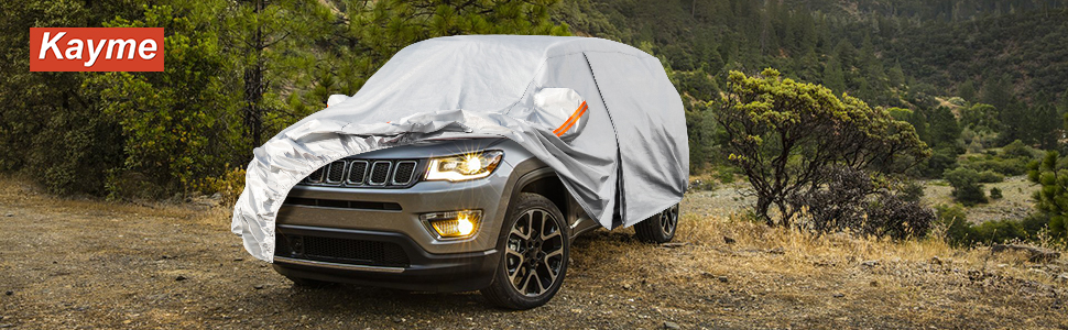 غطاء سيارة Kayme 6 طبقات SUV مقاوم للماء في جميع الأحوال الجوية للسيارات، غطاء خارجي كامل الحجم للحماية من أشعة الشمس فوق البنفسجية مع سحاب قطن، مناسب عالمي لسيارات الدفع الرباعي الجيب (حتى 181 بوصة)