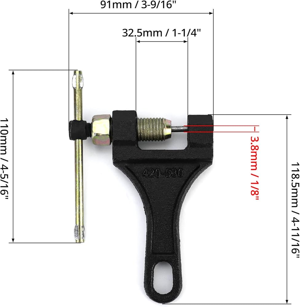 تطبيق قوي: يستخدم لضبط طول سلسلة الأسطوانة، مناسب لسلسلة الأسطوانة 420 428 520 525 528 530. يمكن إزالة الروابط لتناسب أي تطبيق تقريبًا.