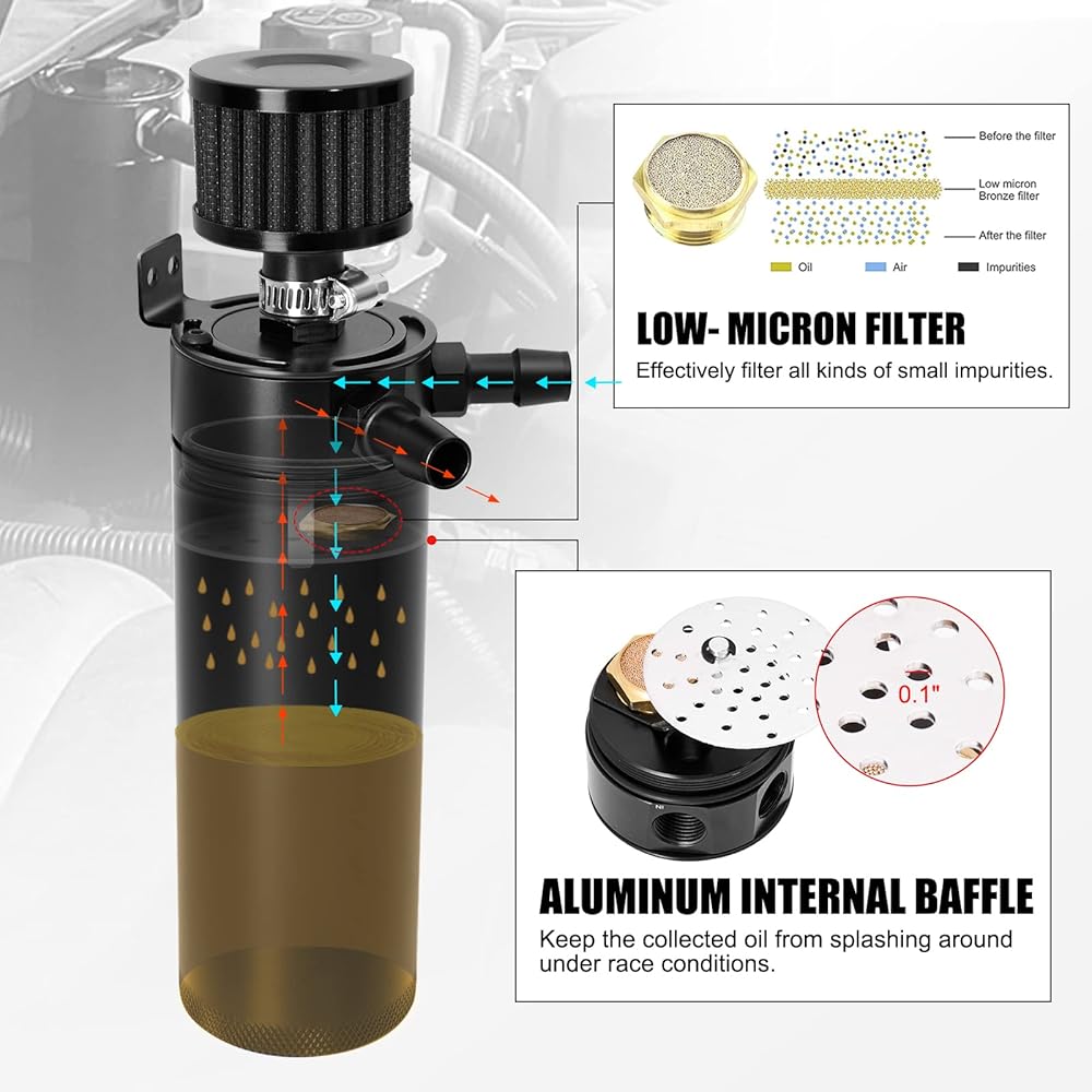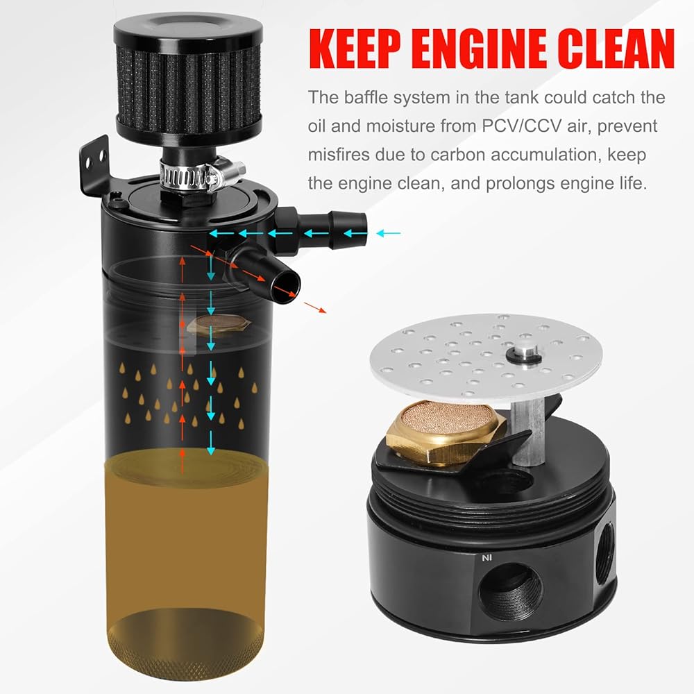 【 حافظ على نظافة المحرك والتقط الزيت 】يمكن لنظام الحاجز الموجود في الخزان أن يلتقط الزيت والرطوبة من هواء PCV/CCV، ويمنع حدوث خلل بسبب تراكم الكربون، ويحافظ على نظافة المحرك ويطيل عمر المحرك.