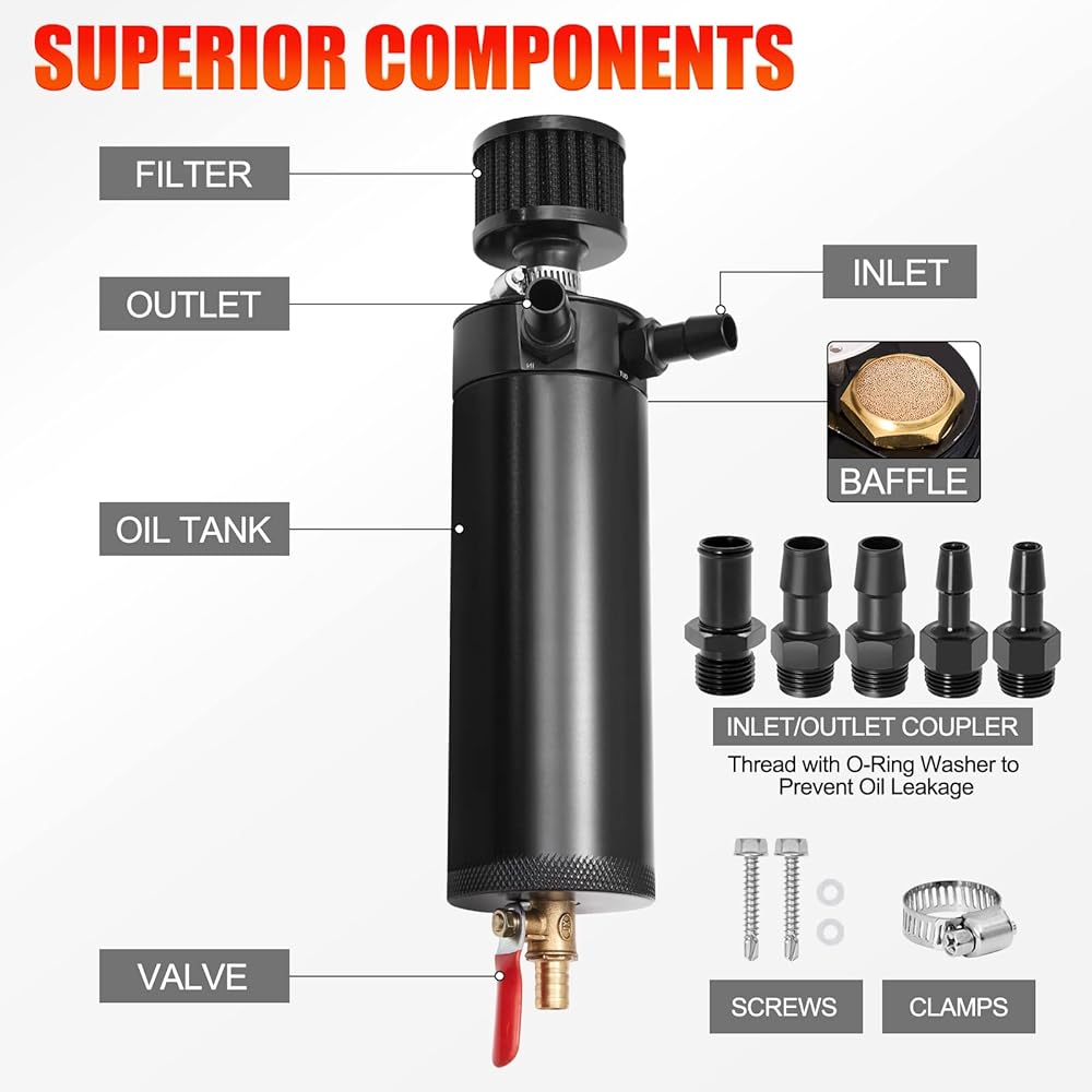 【جودة عالية】خزان علبة التقاط الزيت هذا مصنوع من الألومنيوم عالي الجودة وسطح مؤكسد. متين وليس من السهل أن يبهت. مقاوم للصدأ، ومقاوم للتآكل، ومقاوم للخدش.