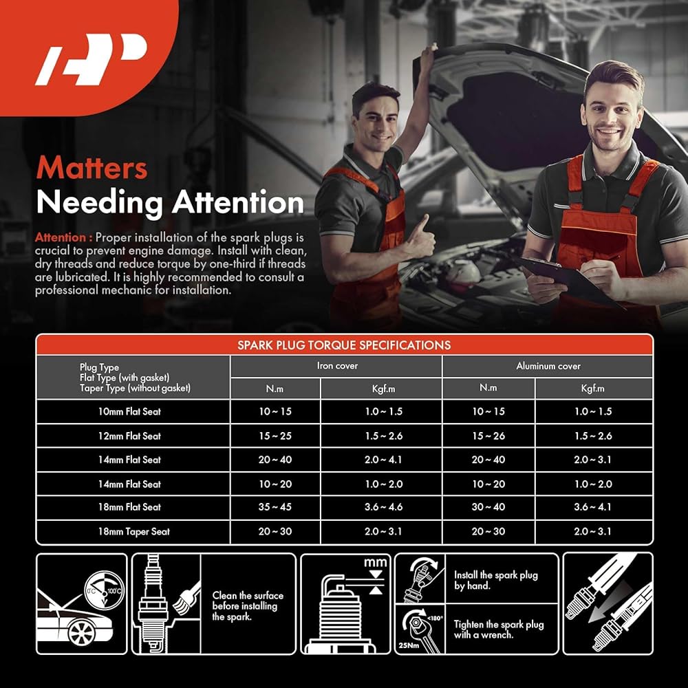 [مصممة لطول العمر]: للحصول على أداء مثالي للمحرك وطول العمر، يوصى باستبدال شمعات الإشعال البلاتينية إيريديوم على فترات تتراوح بين 80,000 إلى 100,000 ميل