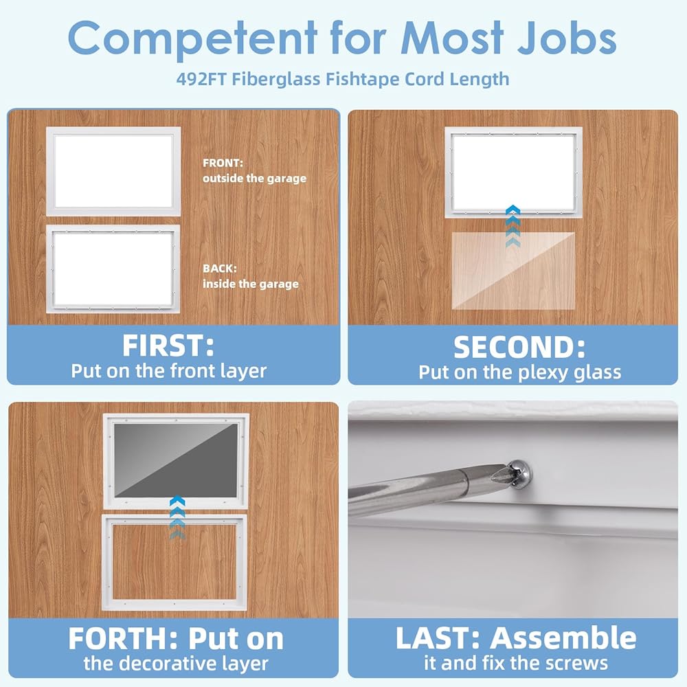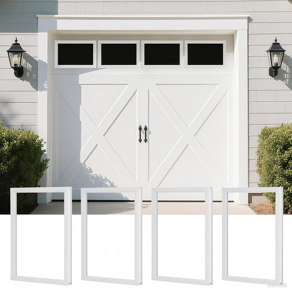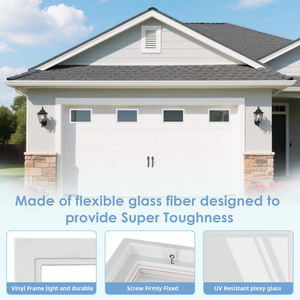 4 قطع من نوافذ باب المرآب، مجموعة نوافذ من الفينيل بديلة مقاس 21 بوصة × 14 بوصة مع زجاج راتنج مقاوم للأشعة فوق البنفسجية، وإدراج نوافذ باب المرآب لأبواب المرآب الخارجية، تصميم واضح (Style2)