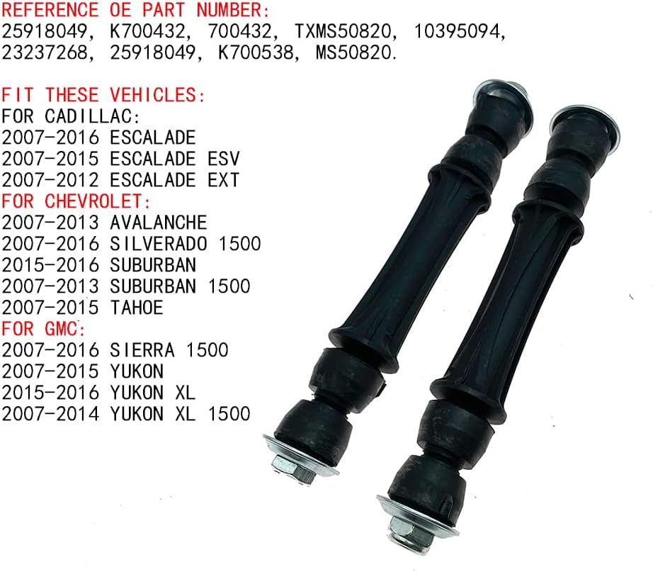 2 Sway Bar Stabilizer End Link مجموعة زوج أمامي يسار يمين لسيارة كاديلاك شيفروليه جي إم سي استبدال 25918049 K700432 700432 TXMS50820 10395094 23237268 25918049 K700538 MS50820
