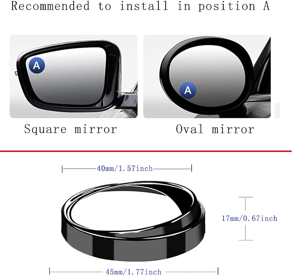 【Mini-Size】: This blind spot mirror is a mini size, which is smaller than the normal size, so it is not suitable for larger vehicles such as trucks, and it even appears smaller on a normal-sized vehicle. Mirror size: 1-9/16"(40mm). Package includes: 2 × blind spot mirrors.