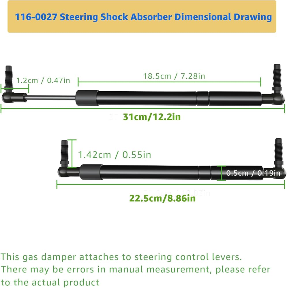 جودة المنتج: بعد ترقية وتحسين ممتص صدمات التوجيه الهوائي 116-0027، أصبح يتمتع بجودة أفضل وعمر خدمة أطول. اتبع معايير التصنيع الأصلية لضمان دقة الأبعاد. بعد عمليات التفتيش المتعددة من قبل الشركة المصنعة، فإن جودة المنتج تلبي المعايير. (تذكير: منتجات غير OEM، ولكن يمكن أن تكون متوافقة تمامًا)