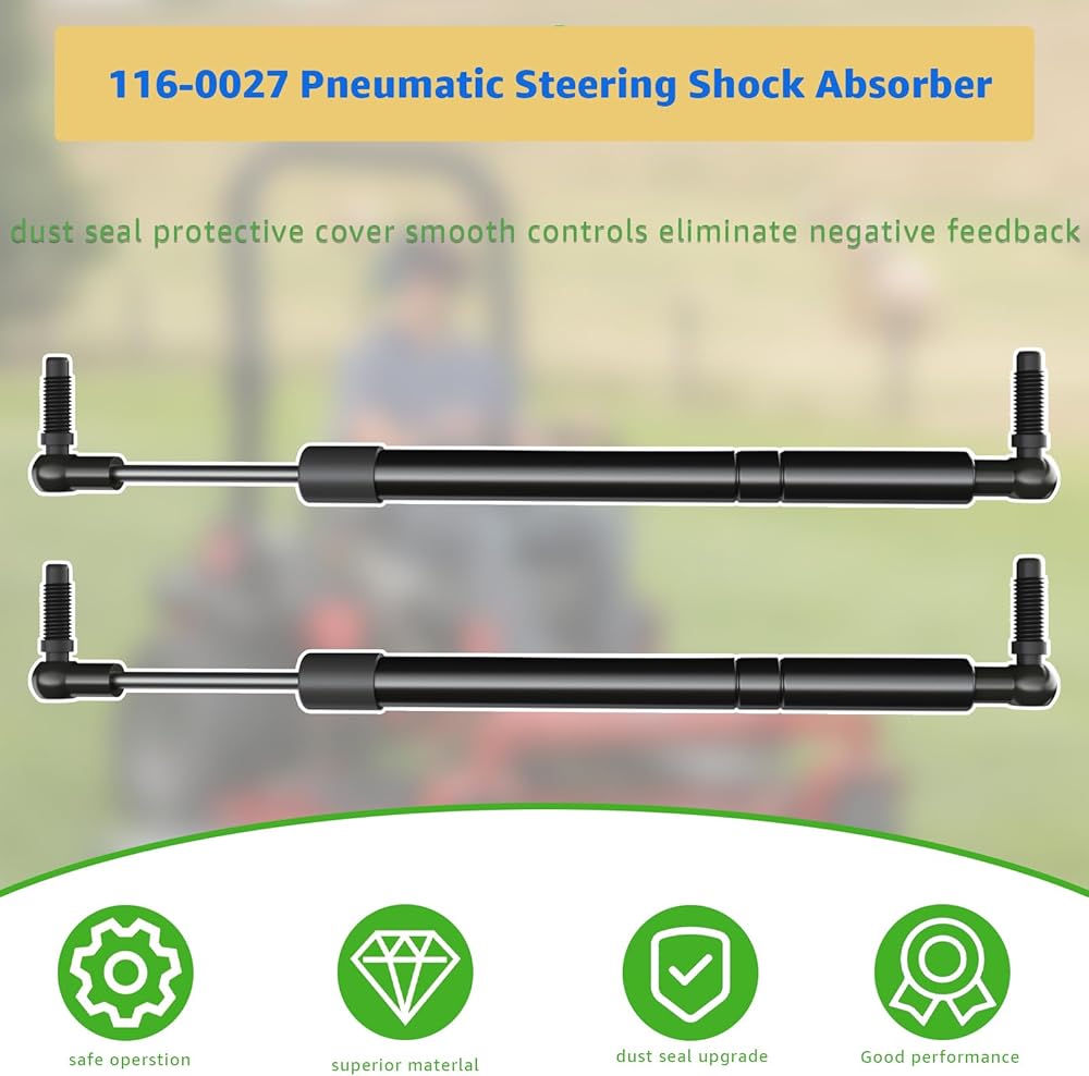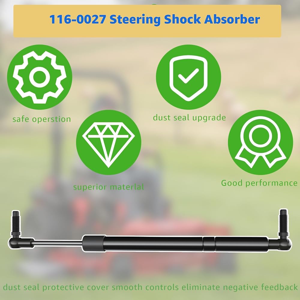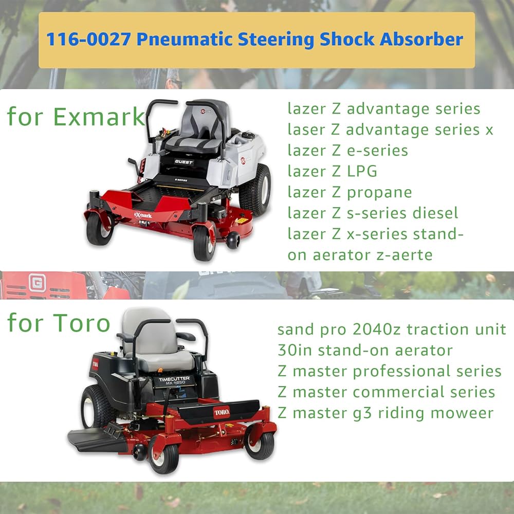 توافق المنتج: 116-0027 أرقام قطع غيار ممتص الصدمات التوجيهي: 142-8117، 109-9820، 241-076، 1160027، 1099820. متوافق مع Exmark Toro، Advantage، Z Master، Lazer Z، Professional series، G3 series 5000، 6000 7000 جزازة العشب.
