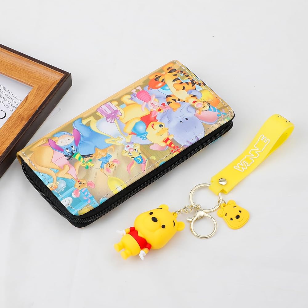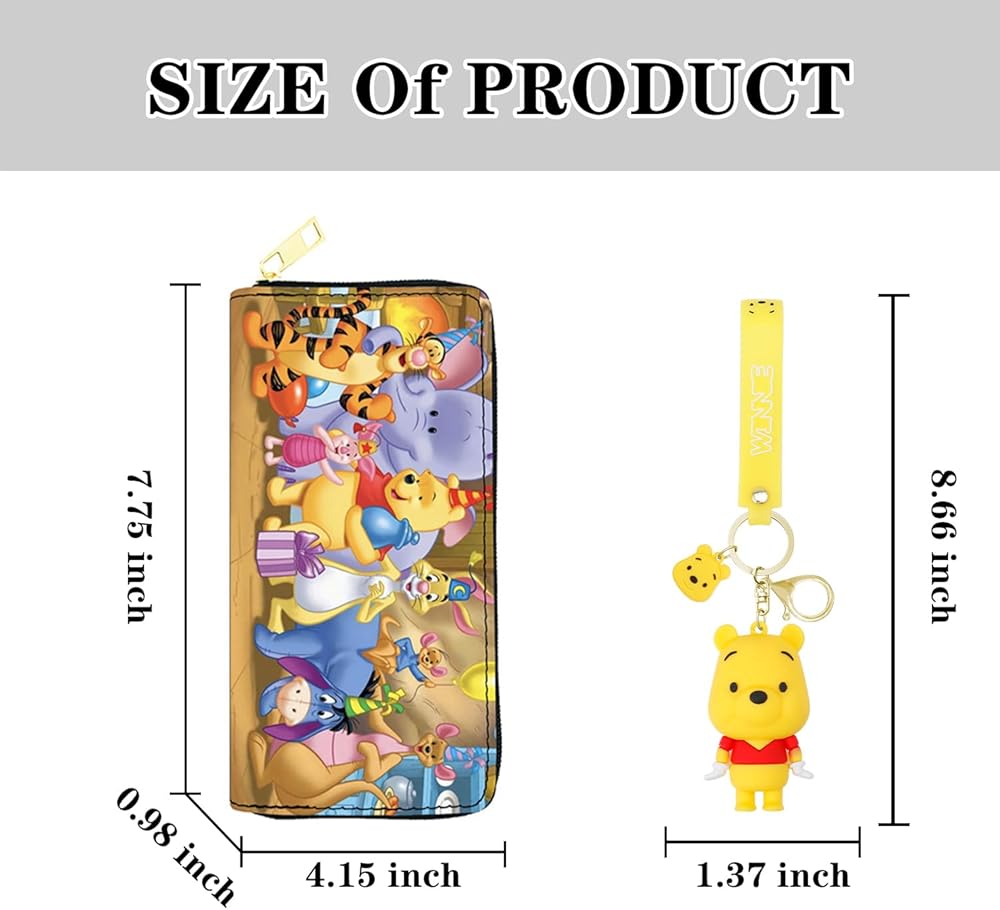• 💗【Size】Pooh wallet size:10*19cm(3.9*7.5 inch),weight 130g; Keychain size: 3*5cm(1.18*1.96 inch), convenient for daily use.