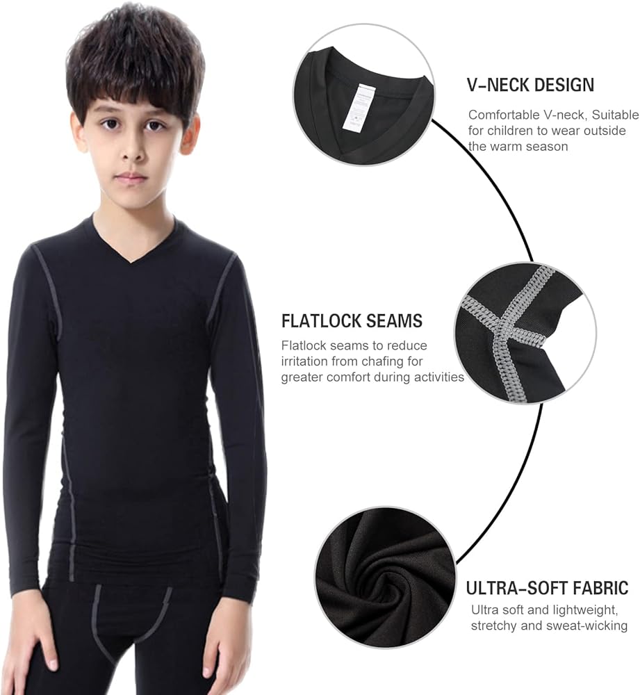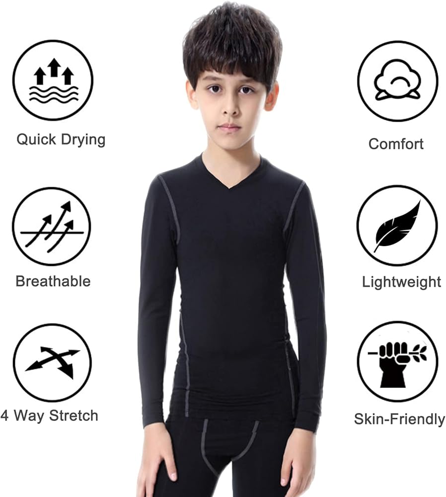 ⚽ناعمة وخفيفة الوزن وصديقة للبشرة: مصنوعة من مواد فاخرة، قمصان الضغط للأولاد لدينا ناعمة بشكل استثنائي وخفيفة الوزن ولطيفة على بشرة طفلك. إنها توفر إحساسًا مريحًا بالجلد الثاني مما يسمح بحركة غير مقيدة في الملعب أو الملعب.