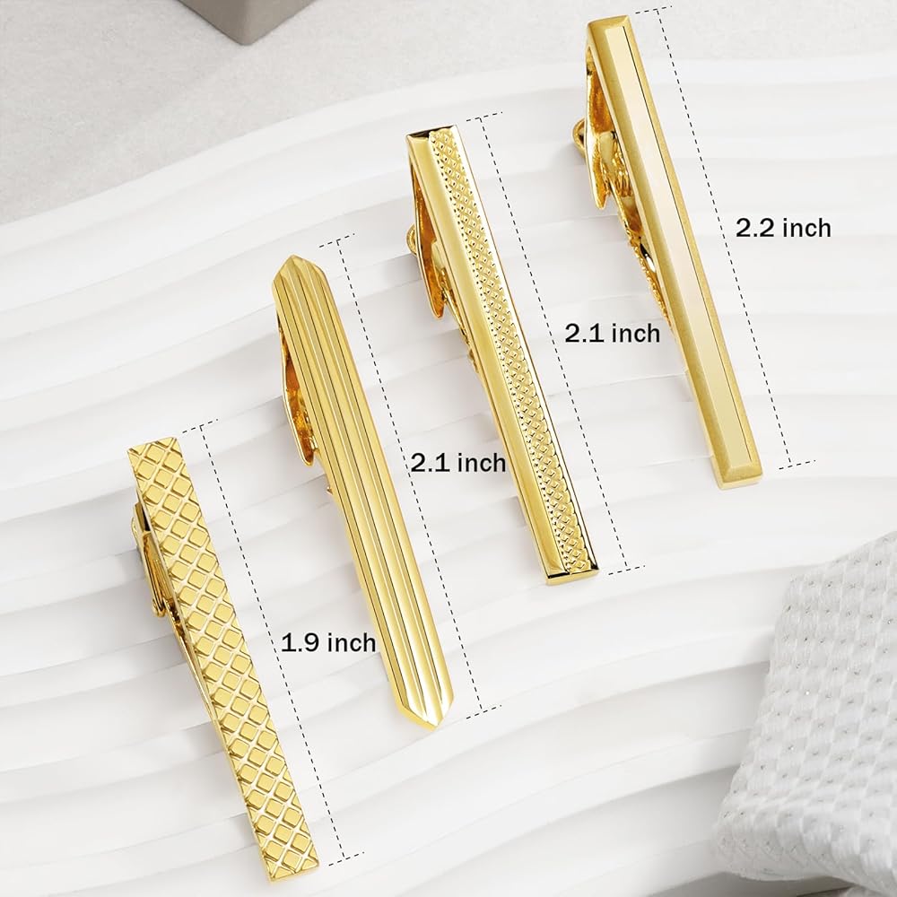 【مناسبة لأي مناسبة】 يمكن مطابقة ربطات العنق الذهبية المكونة من 4 قطع بشكل أفضل مع ألوان مختلفة من ربطات العنق، مما يجعلك أكثر أناقة وسخاء. أيضًا، يمكن لمشبك ربطة العنق هذا أن يلبي احتياجاتك في مناسبات مختلفة: عيد الحب، والكريسماس، وعيد الفصح، والذكرى السنوية، والخطوبة، والحفلات، والاجتماعات، والمواعيد، وحفلات الزفاف، والارتداء اليومي، إلخ.