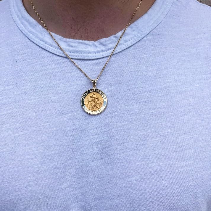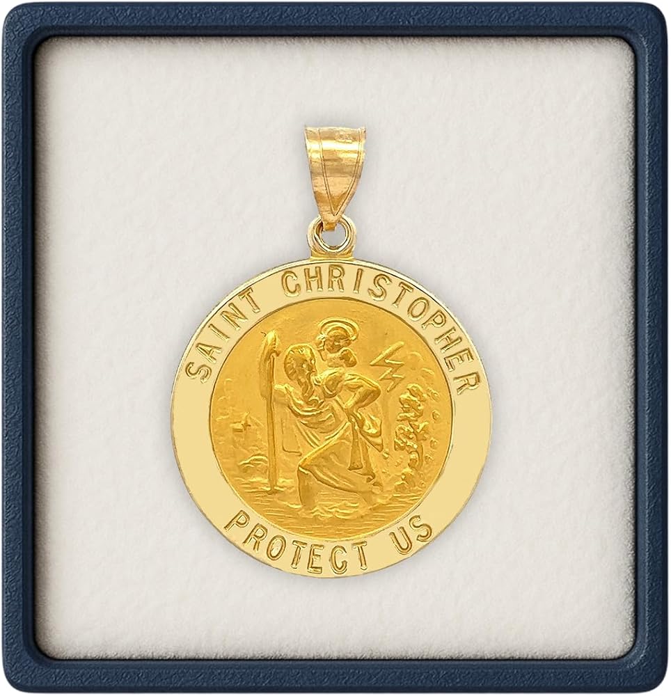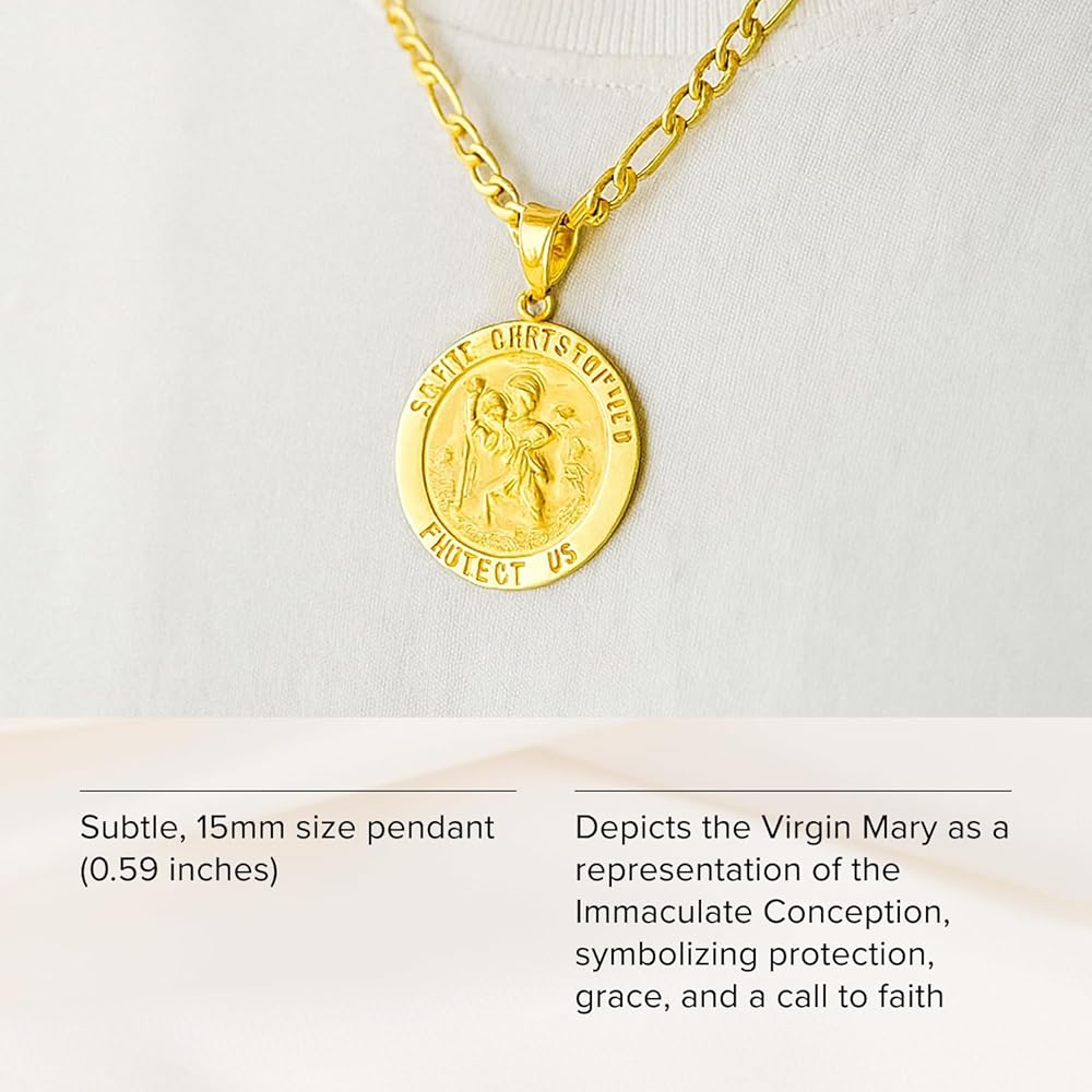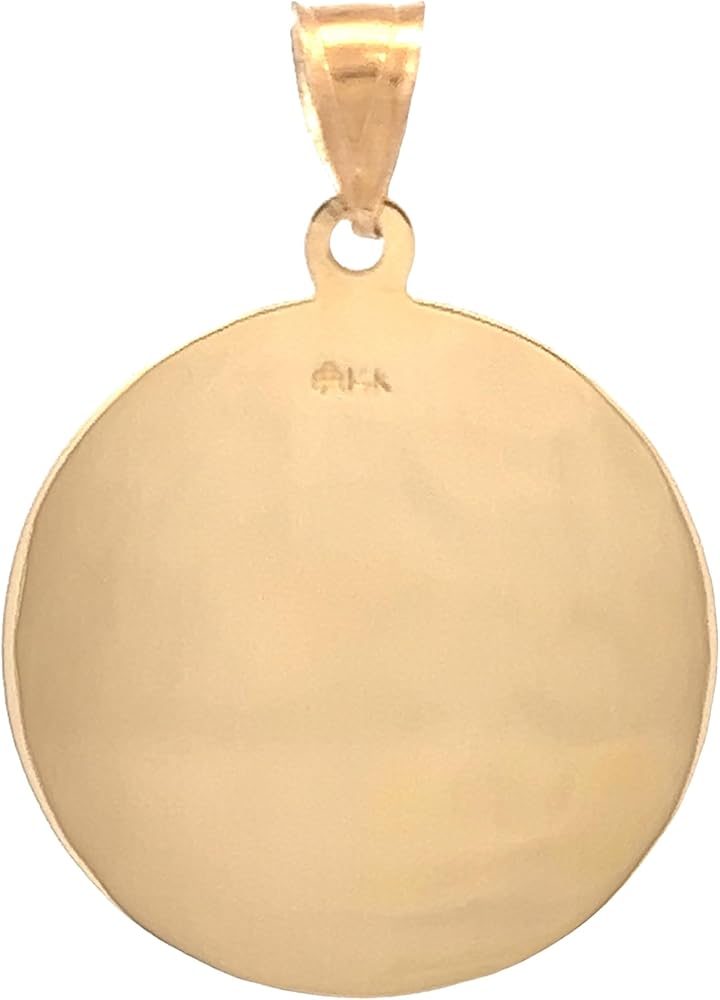 • اختيار متنوع: تأتي القلادة ذات السحر الديني ذات الجودة المتوارثة إما من الذهب الأصفر عيار 14 قيراط أو الذهب الأبيض عيار 14 قيراط بأحجام مختلفة؛ 3/4 بوصة (حجم الدايم)، 7/8 بوصة (حجم النيكل)، 1 بوصة (حجم الربع)؛ مع أو بدون سلسلة ذهبية عيار 14 قيراط